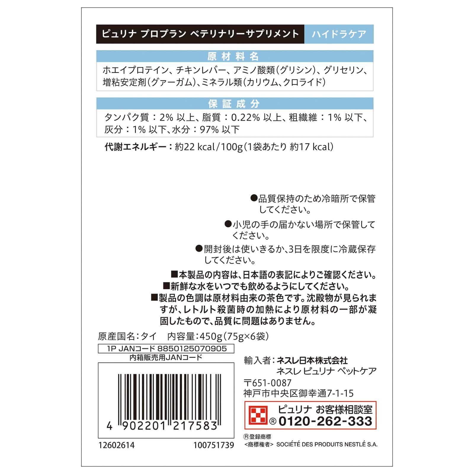 ピュリナ プロプラン 経口補水液 ハイドラケア 猫用 サプリメント パウチ (75gx6袋)水分補給 オズモライト配合