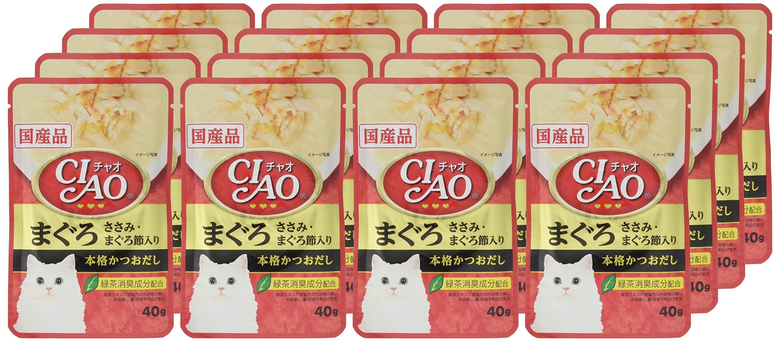 チャオ (CIAO) パウチ まぐろ ささみ・まぐろ節入り 40g 16個セット
