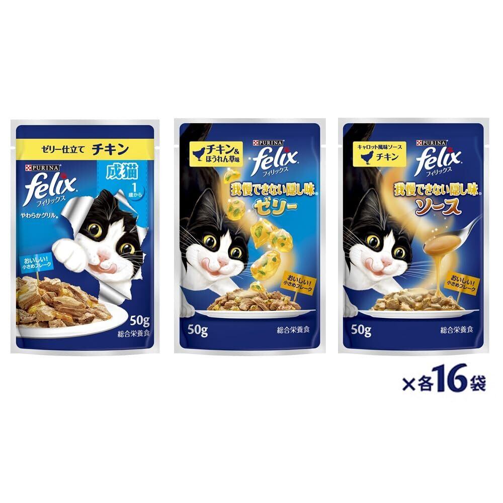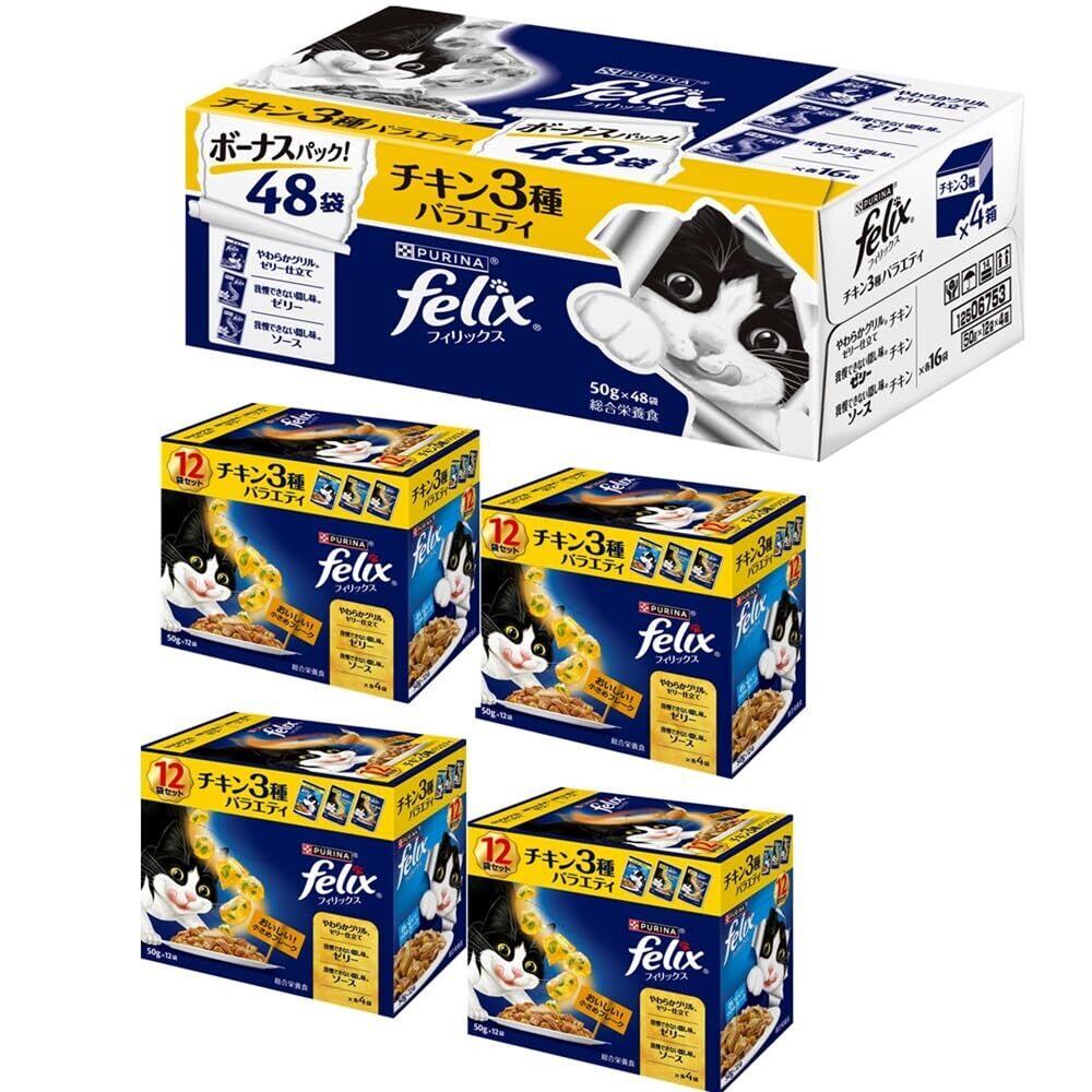フィリックス パウチ 成猫 チキン3種バラエティ 50gx48袋入り(12袋x4箱)