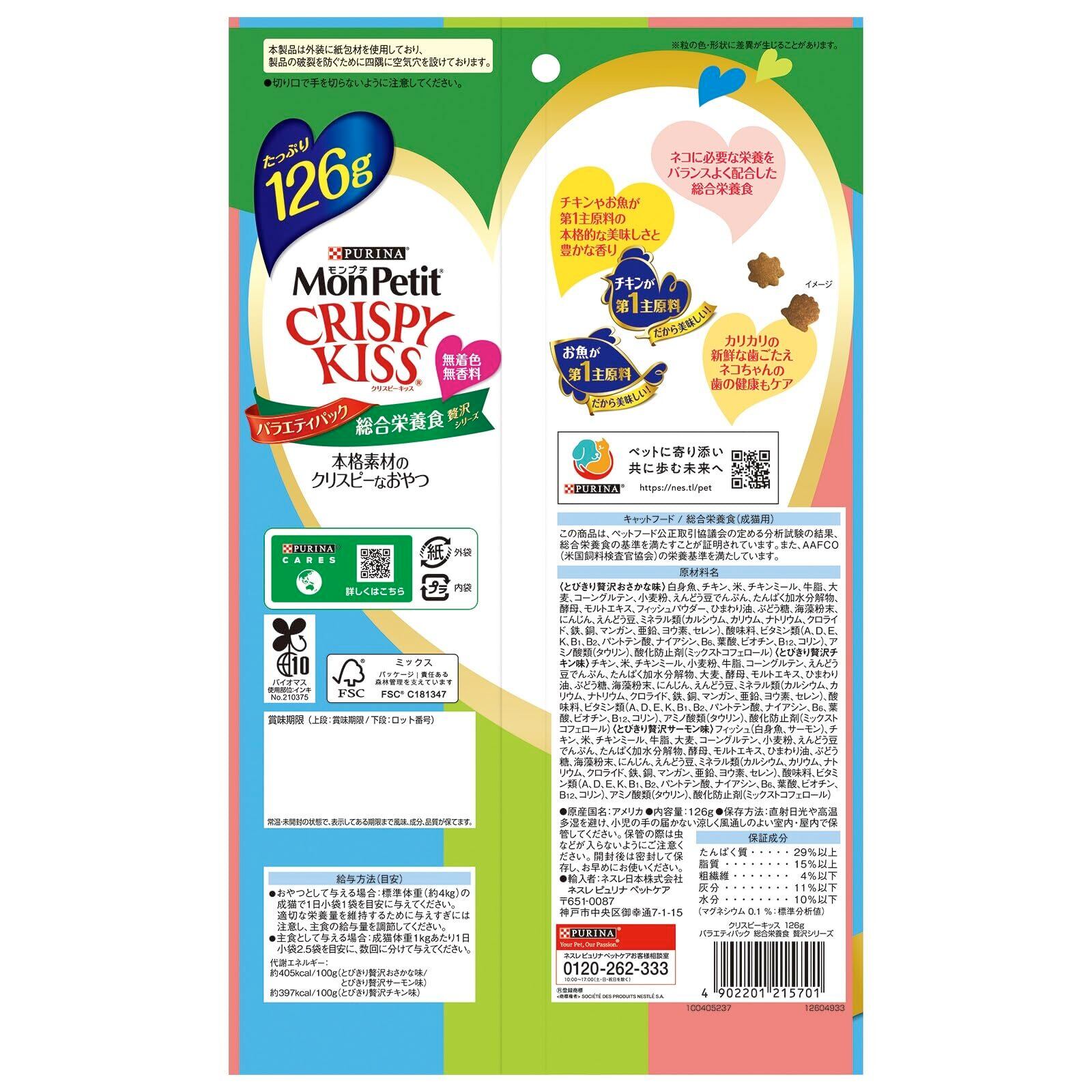 モンプチ クリスピーキッス 猫用おやつ バラエティーパック 総合栄養食 贅沢シリーズ 126g(6gx21袋)