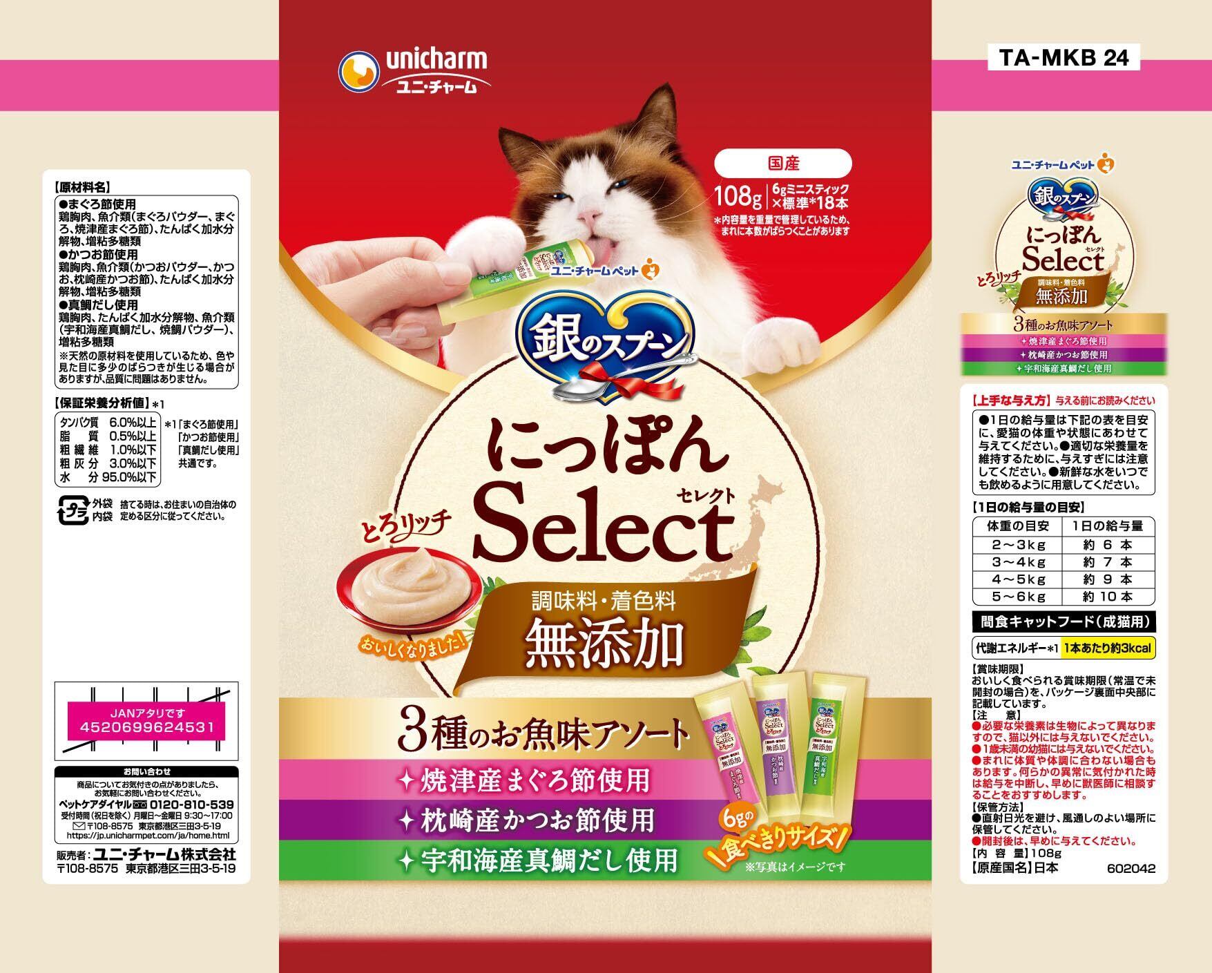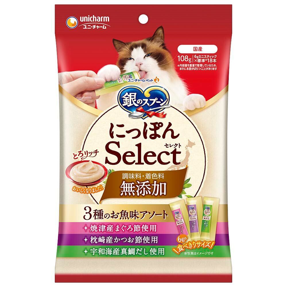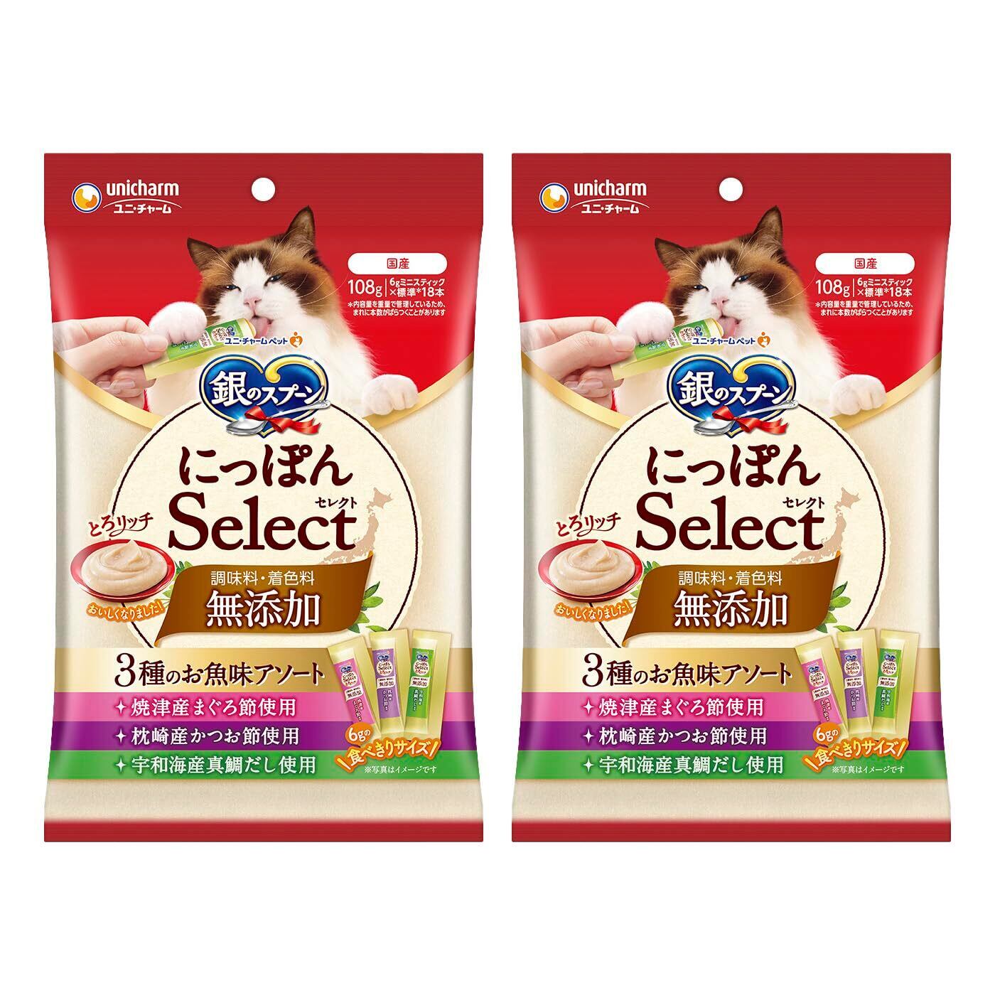 【無添加】[調味料・着色料不使用] 銀のスプーン にっぽんSelect とろリッチ 3種のお魚味アソート 108g×2 [猫用おやつ]【国産/健康ケア/食べきりサイズ/まとめ買い】