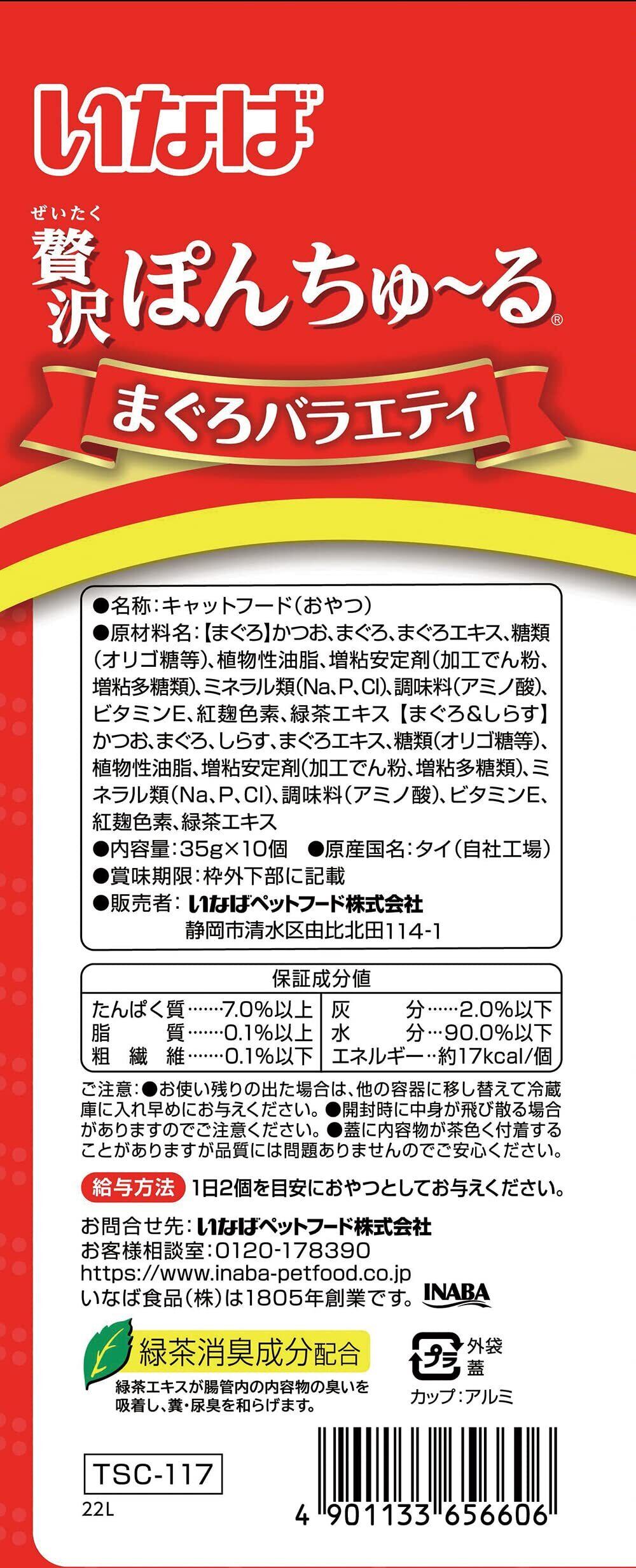 いなば 贅沢ぽんちゅ~る まぐろバラエティ 35g×10個 猫用おやつ