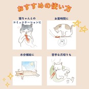 ちゅるっと出して舐めるだけで簡単に水分補給、栄養補給ができる猫用の液状おやつCIAOちゅーる。おやつとして与えたり、普段のごはんに混ぜたり、お薬を服用するときに混ぜたりと、使用用途はいろいろ。