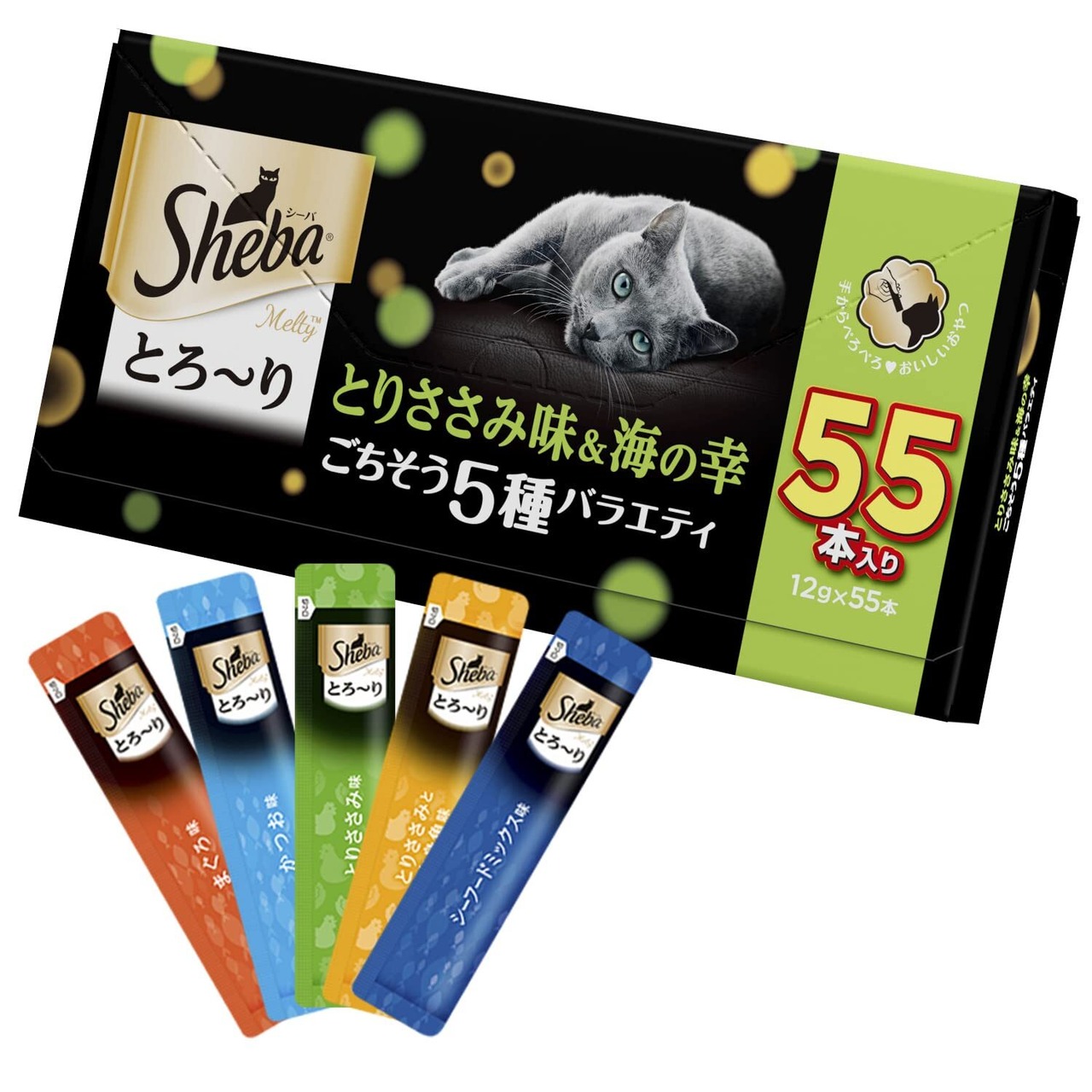 シーバ とろ~り メルティ おやつ 成猫用 とりささみ味&海の幸 ごちそう5種バラエティ 12g×55本 キャットフード 猫 Sheba Melty メール便 大容量 まとめ買い