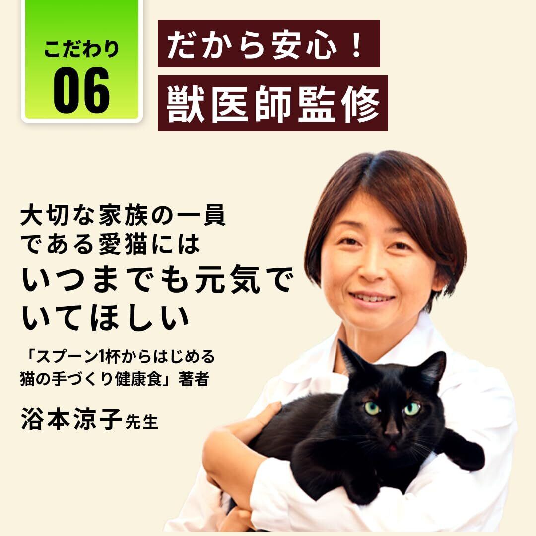 【獣医師監修】使用する食材はすべて厳選し、獣医師の視点からも安全性を確認。安心して愛猫に与えられるおやつをお届けします。