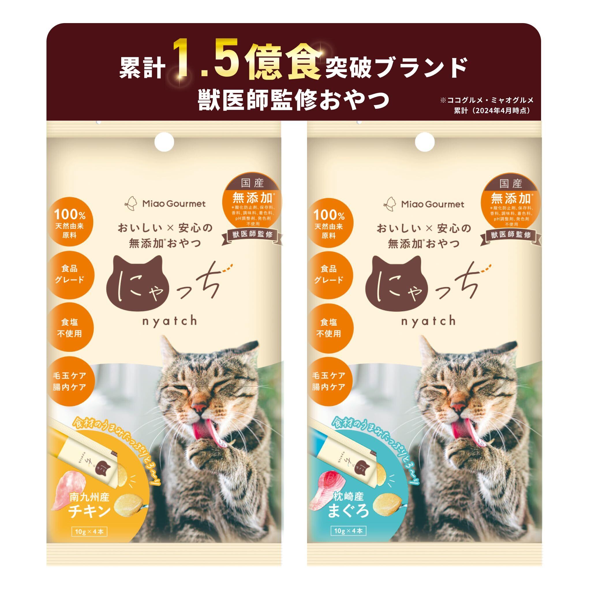 ミャオグルメ にゃっち 8本入 (10g×4本入×2袋, チキン&まぐろ) 国産 無添加 おやつ 猫 ピューレ ペースト 食塩不使用 グレインフリー 低カロリー 毛玉ケア 腸内ケア ご褒美 腎臓 水分補給 下部尿路 ストラバイト