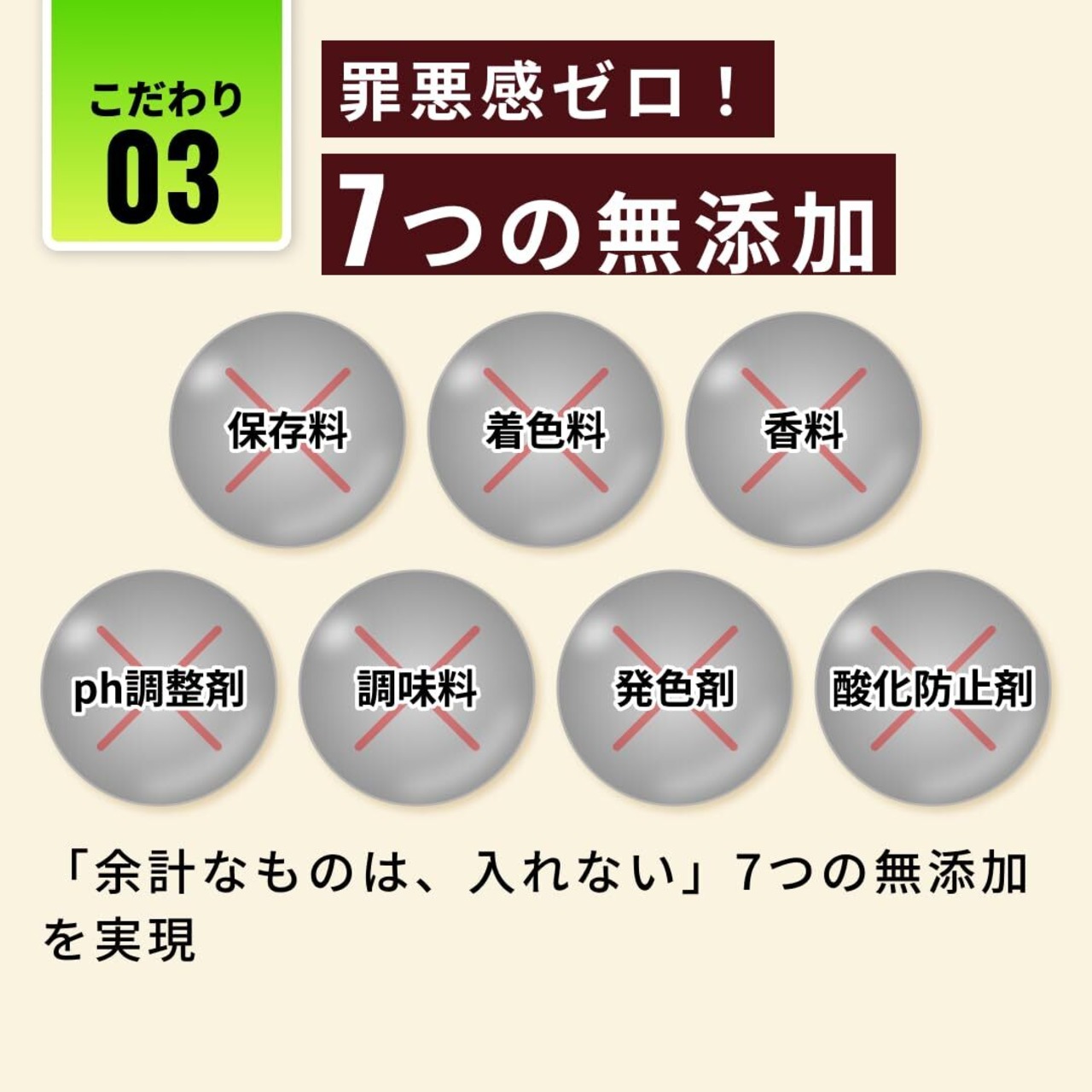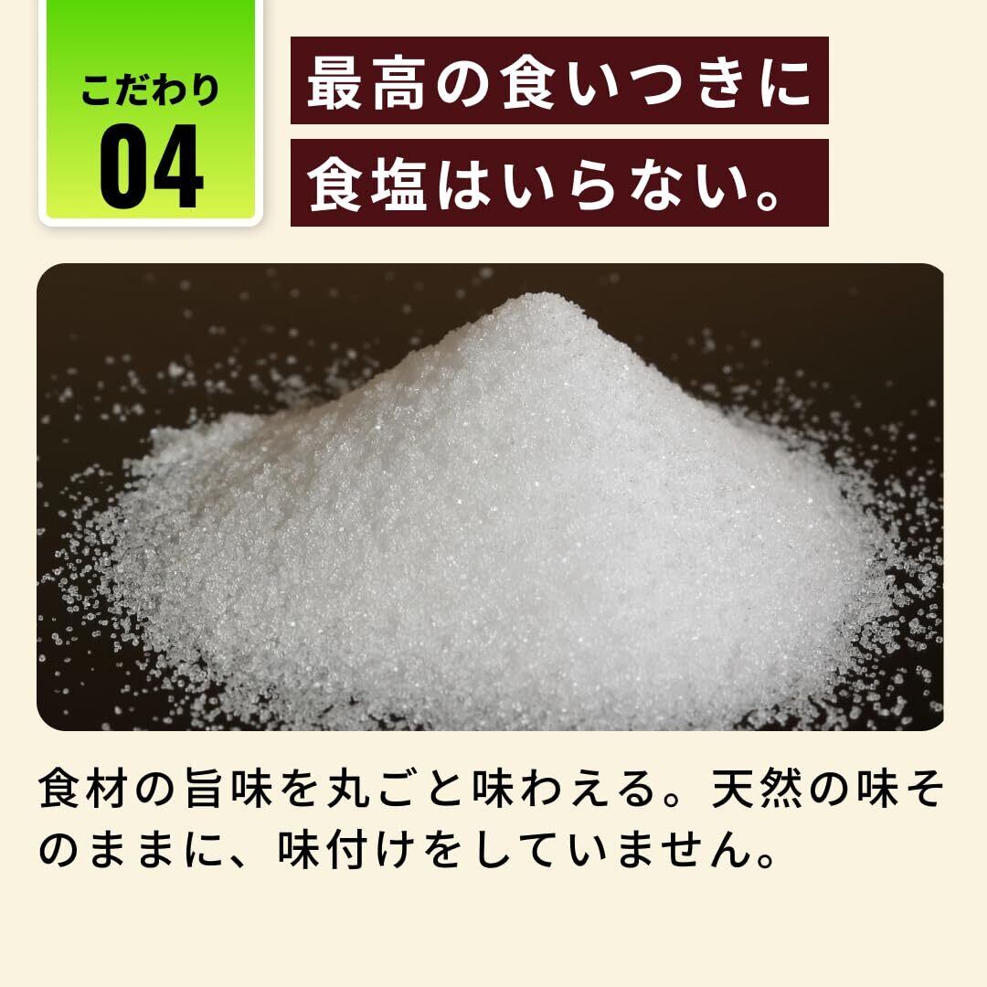 【毎日安心の国産・無添加】「余計なものは入れない」をコンセプトに、国内の工場で、素材そのまま無添加(※)でお作りしています。食塩やグレインも不使用なので安心。※酸化防止剤、香料、調味料、着色料、pH 調整剤、保存料、発色剤不使用
