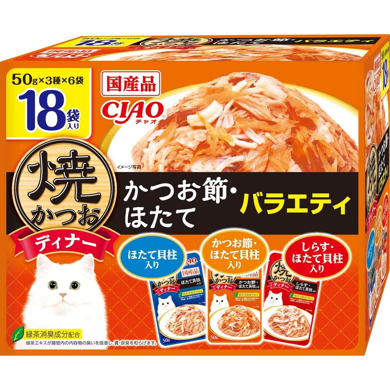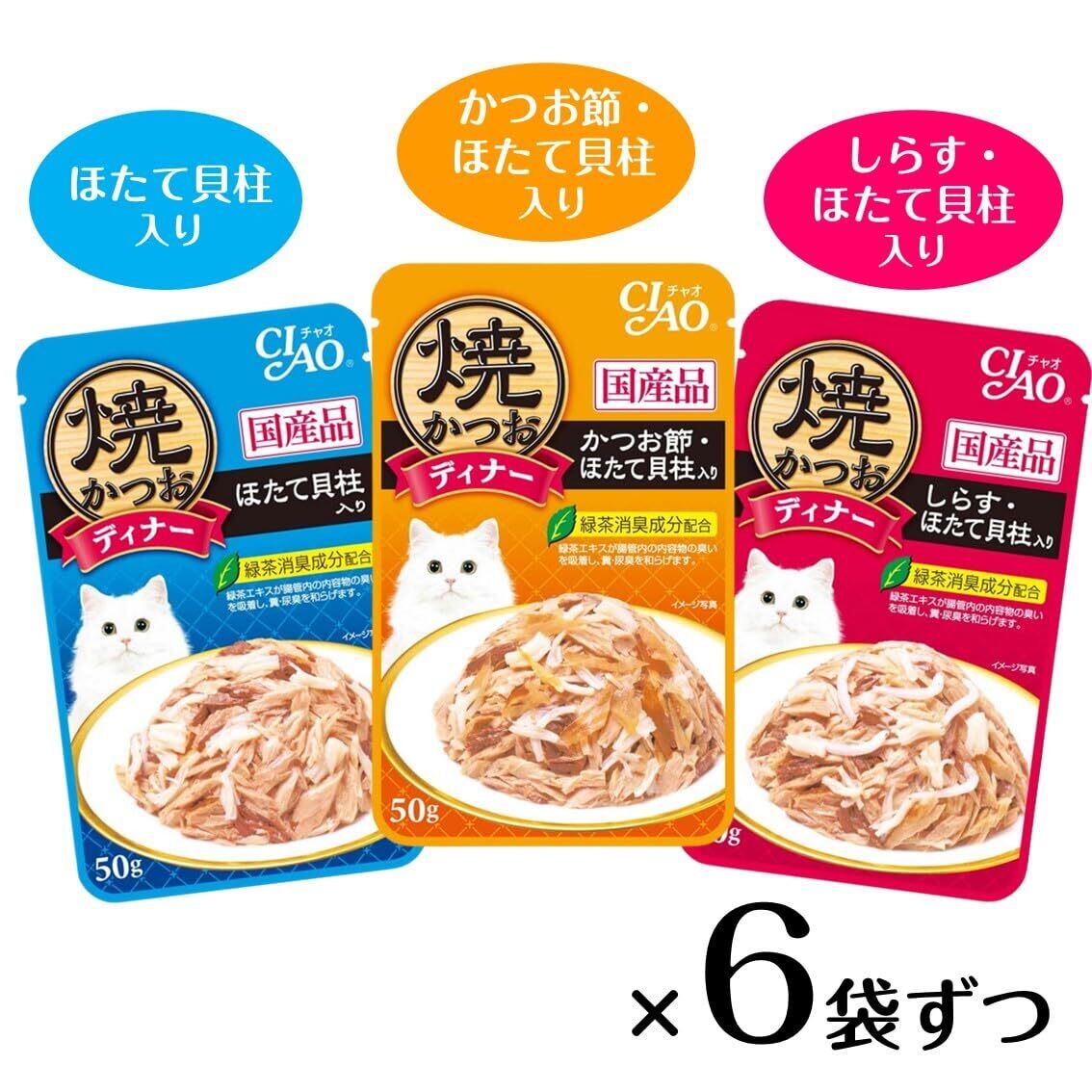 チャオ (CIAO) 焼かつおディナー かつお節・ほたてバラエティ 50g×18袋 猫用 ウェットフード