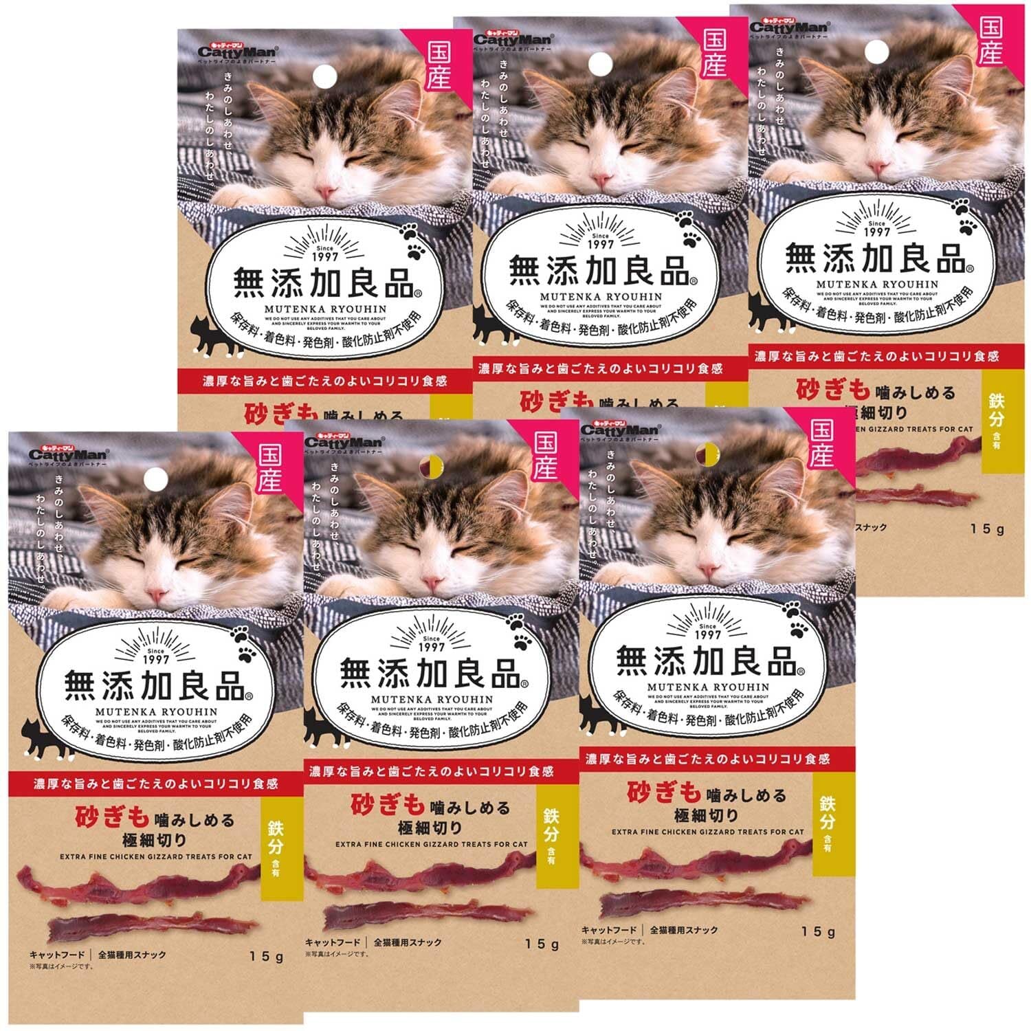 キャティーマン (CattyMan) 無添加良品 砂ぎも噛みしめる極細切り 15g×6袋