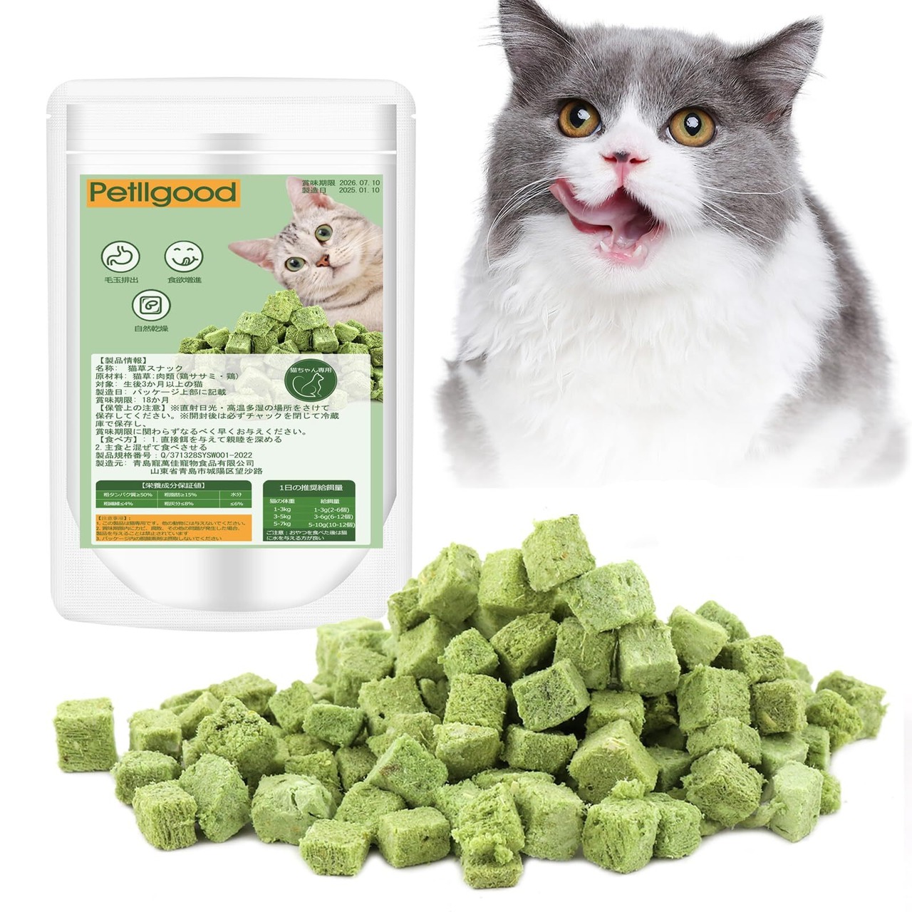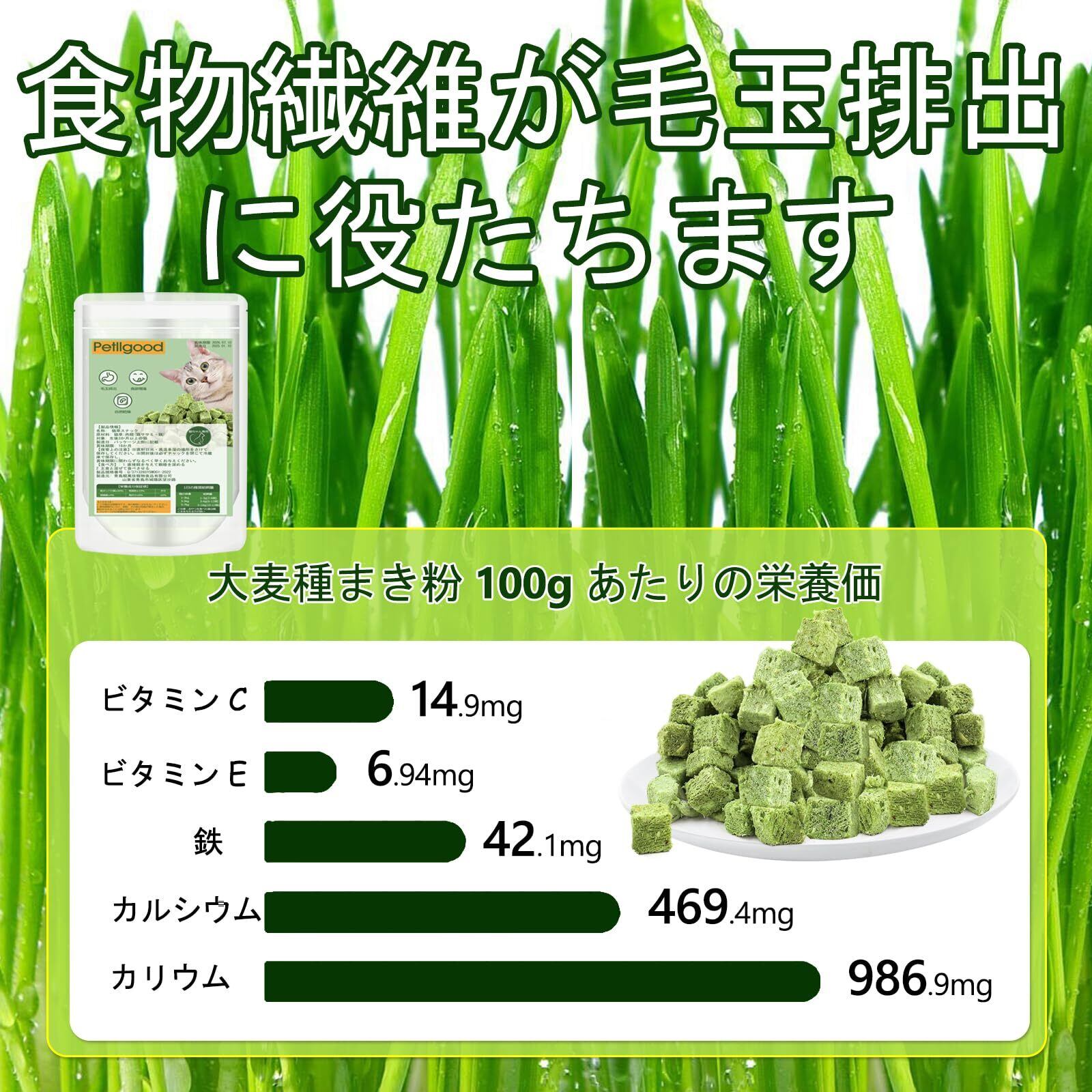 Petllgood 猫草スナック 60g 乾燥猫草スナック 100%天然成分 無添加 無着色 歯ぎしり棒 毛玉排出 健康ケア ストレス解消 栄養補助 食欲増えす 元気維持 猫 えさ おやつ 間食