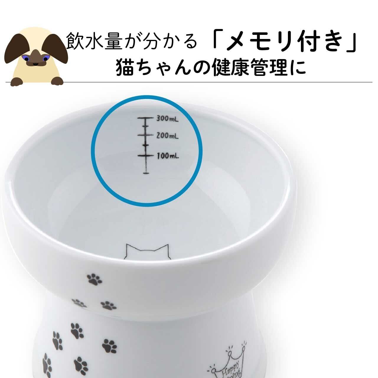 猫壱(necoichi)ハッピーダイニング 猫用 脚付ウォーターボウル ハイタイプ 猫柄 すべり止めシリコン付き 電子レンジ&食器洗浄機対応