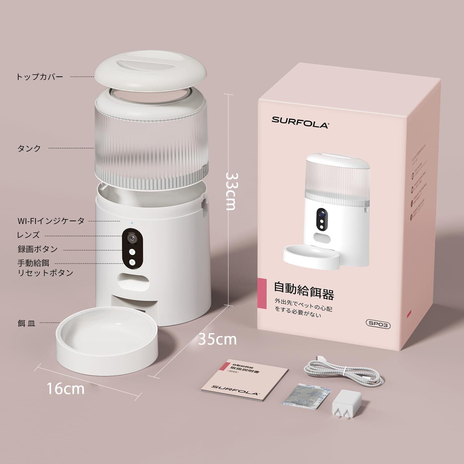 Surfola 自動給餌器 猫 犬 カメラ付き 4L大容量 WiFi必要 スマホ連携 うさぎ ペット 餌やり機 1日8食 遠隔操作 双方向会話 2WAY給電 音声録音 操作簡単 お手入れ簡単 日本語対応アプリ説明書 SP03