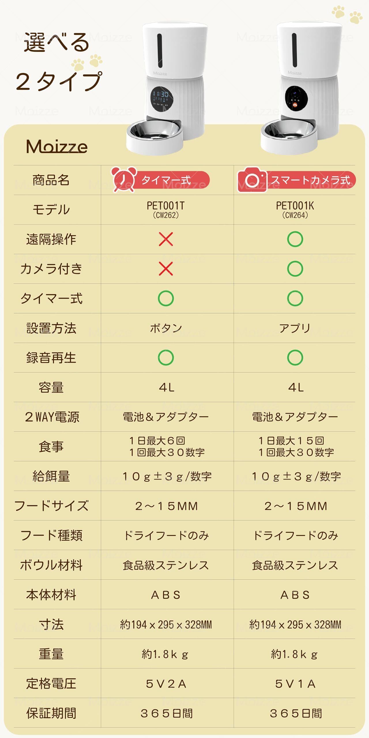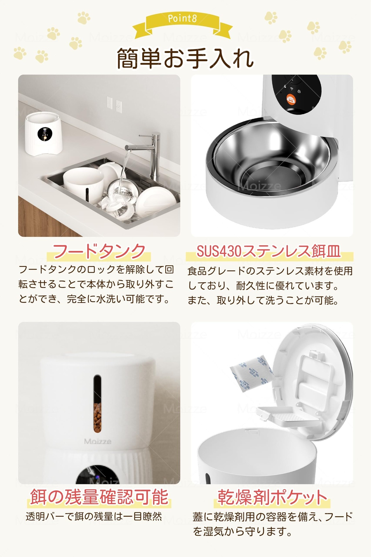 Moizze 自動給餌器 カメラ付き 多機能 猫 犬 自動餌やり機 4L Wi-Fi 2.4Ghz/5Ghz アプリ遠隔操作 録音再生 双方向通話 早食い防止 簡単お手入れ ペット給餌機 (カメラ式)