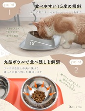 【食べやすい丸い形状のフードボウル】適度な深みがあり入り口が広くペットにとって食べやすい形状のフードボウルです。隅っこの食べ残しが苦手な鼻ぺちゃワンちゃん、猫ちゃん、エリザベスカラーをつけている子でも、フードが中央に集まり最後までキレイに食べれる餌入れです。