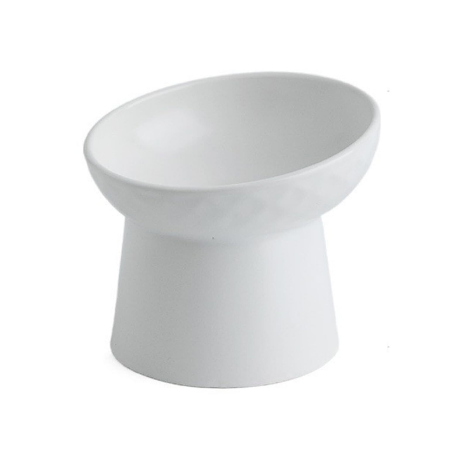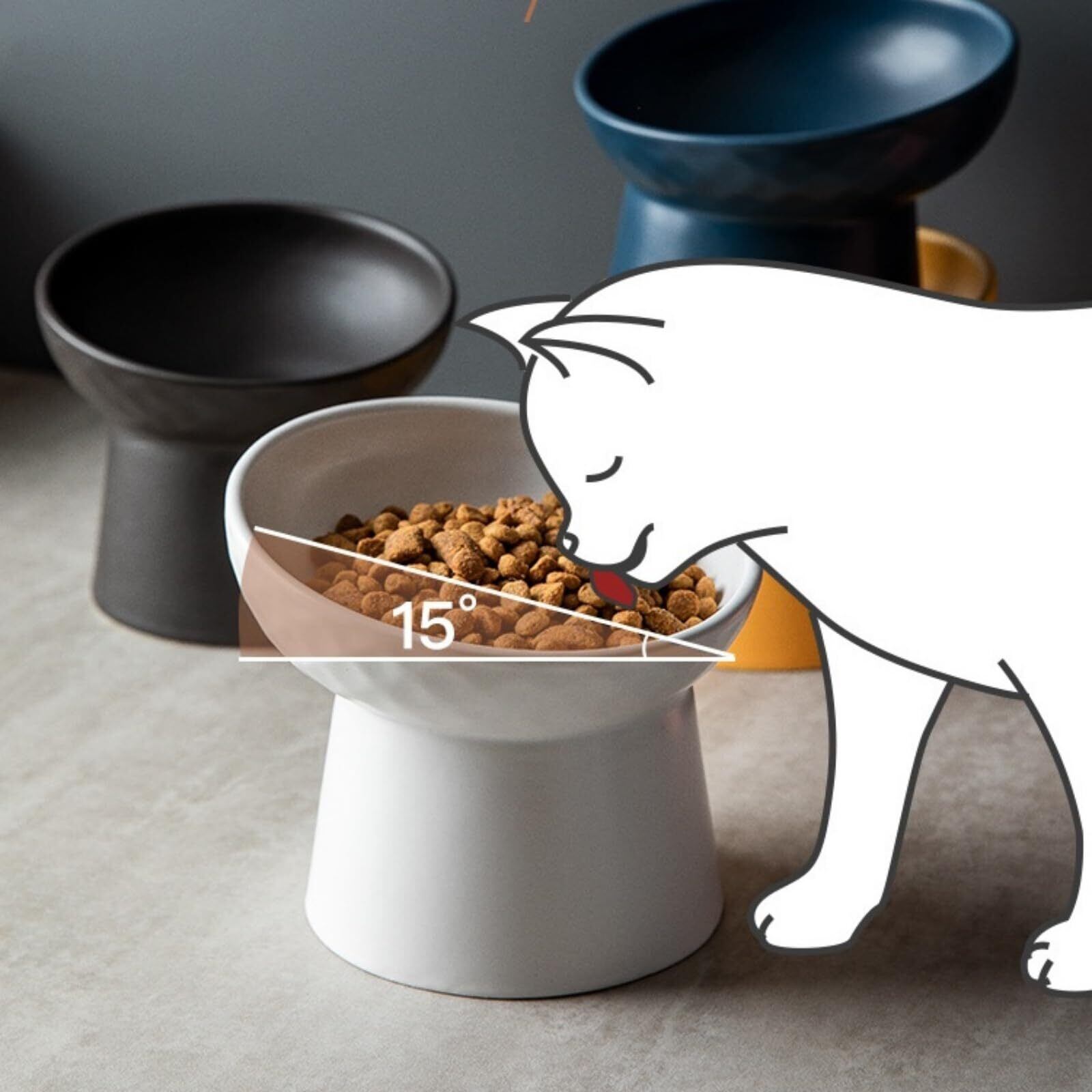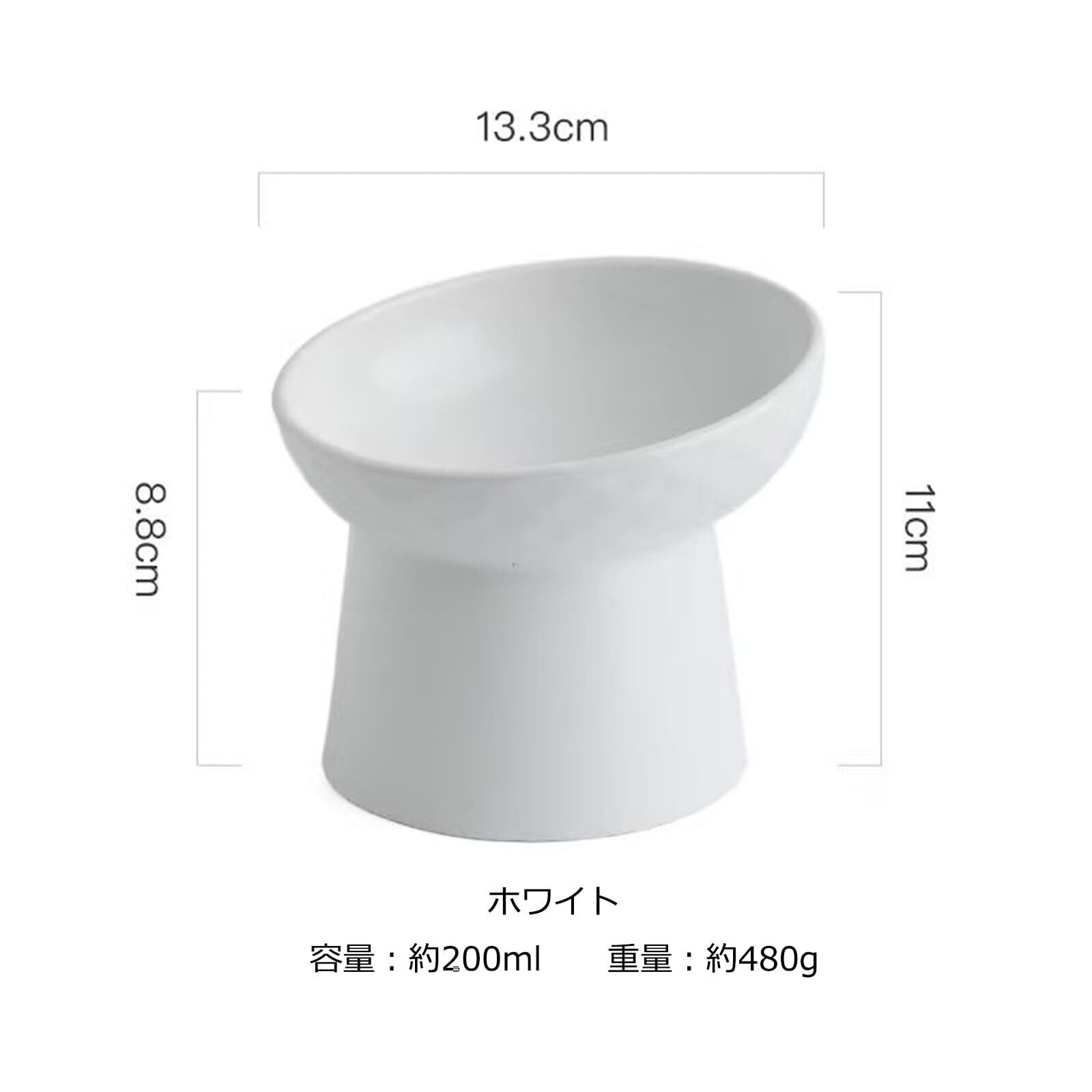 L'andFree 猫 餌入れ 餌皿 ご飯皿 水飲み皿 食器 フードボウル 陶器 犬 フードボウル 犬 えさ入れ 15度の傾斜 電子レンジ 食器洗浄機対応(ホワイト)