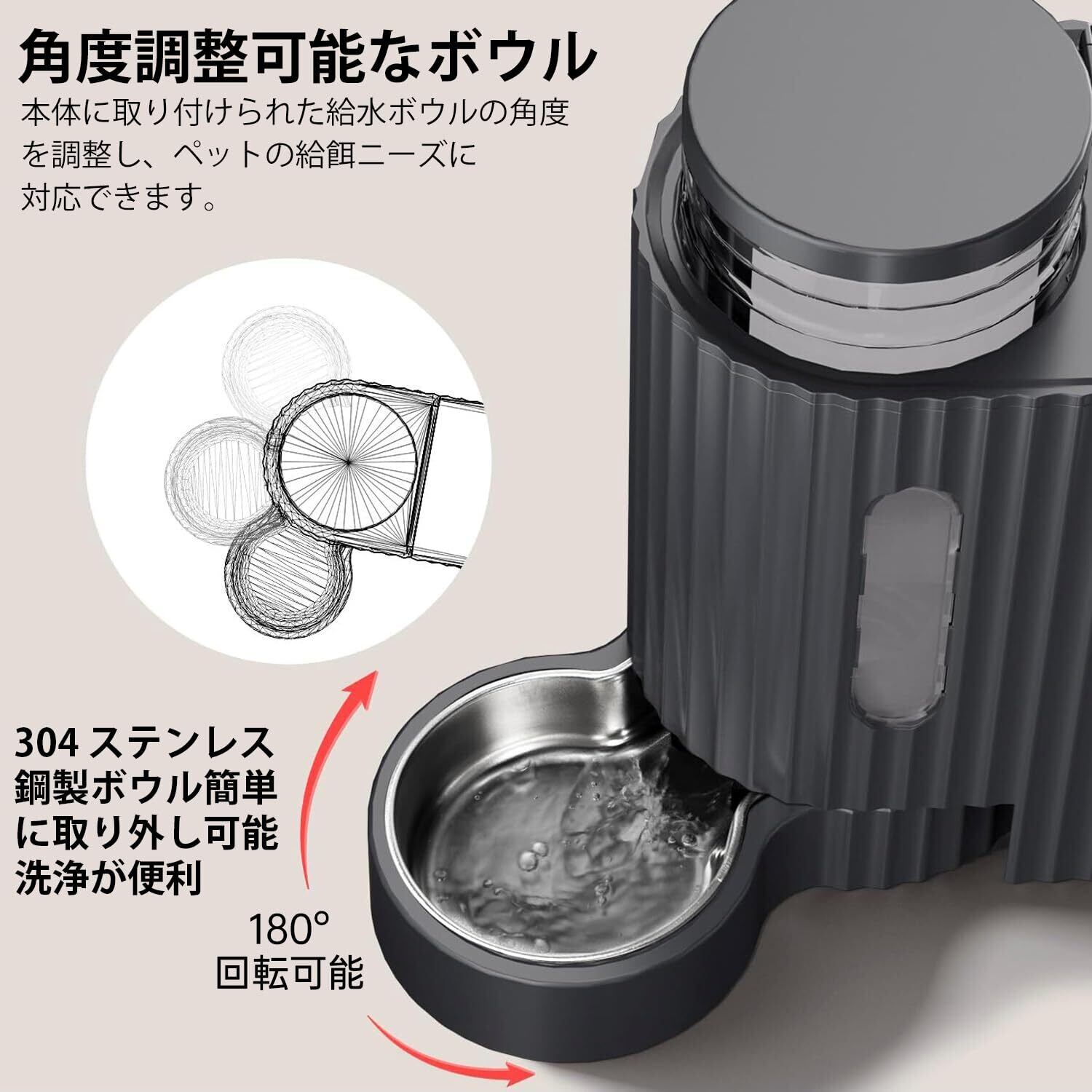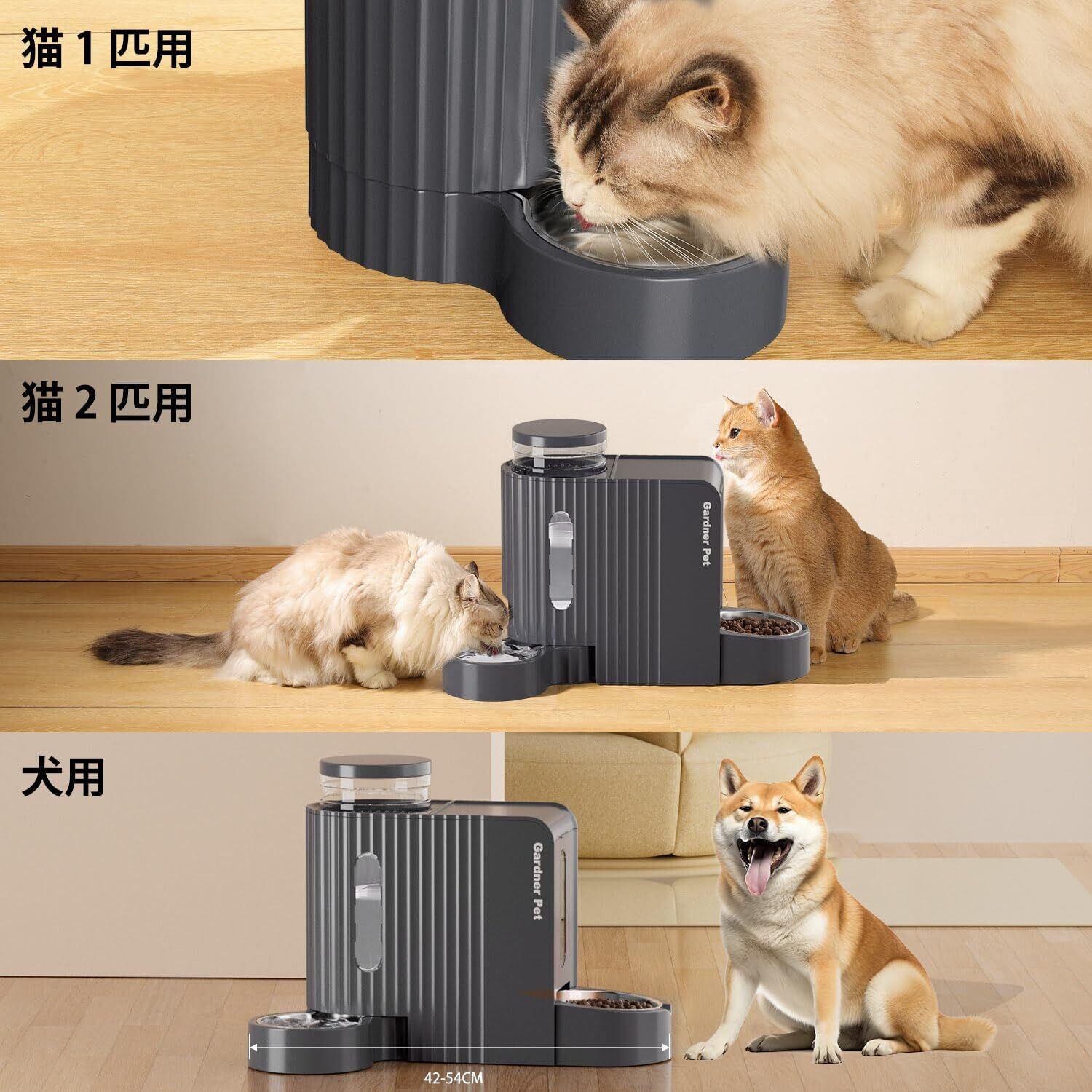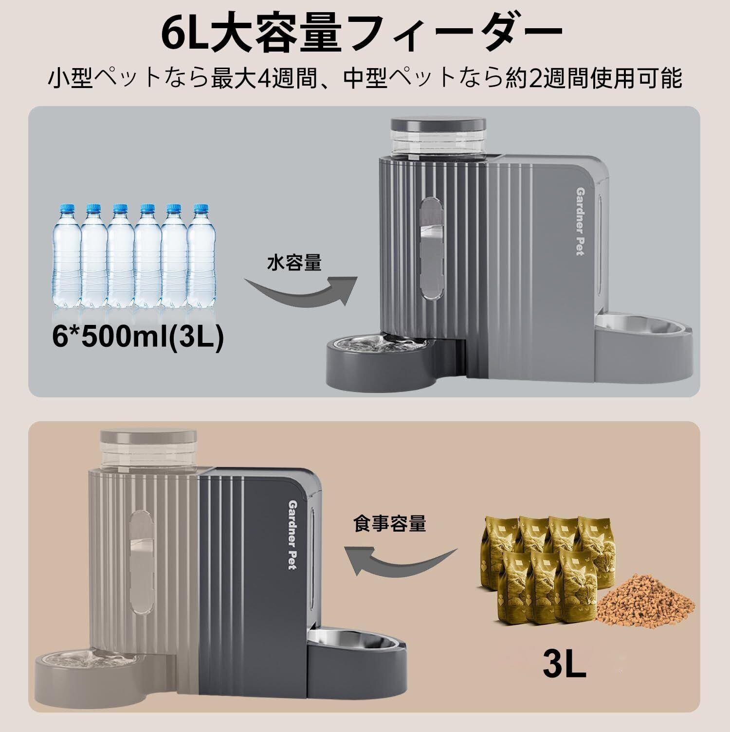 Gardner Pet 6L 大容量 ステンレスx2 無電重力式 自動給餌器 猫 犬【給餌器3L+給水器3L】一体型 おしゃれデザイン 自動餌やり機 ステンレス製ボウル 取り外し可能 丸洗い可能 犬猫兼用 留守番 長持ち モダンデザイン 屋内屋外 自由設置 ボウルは180°回転可能 無電でも先端設計 機械美(グレー)