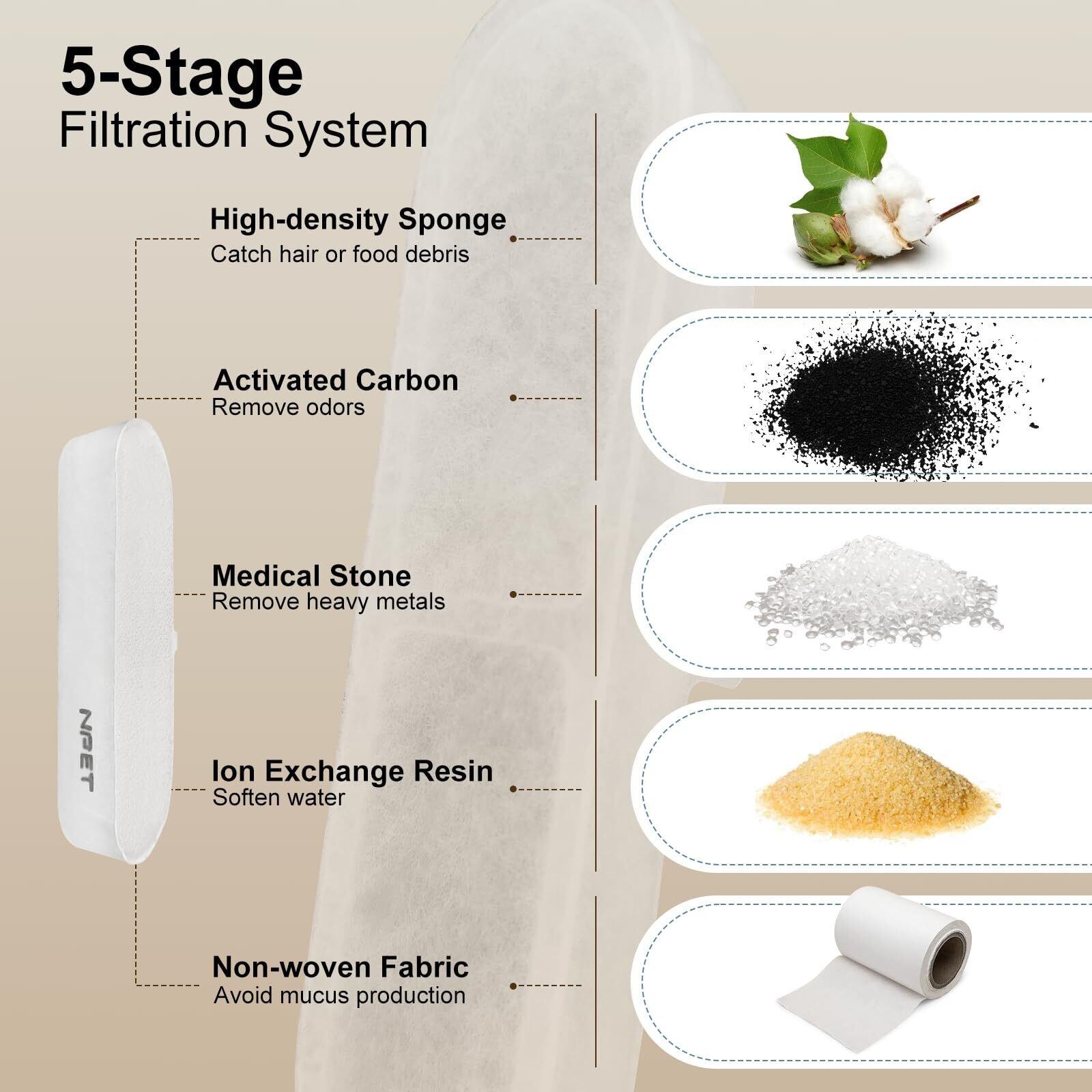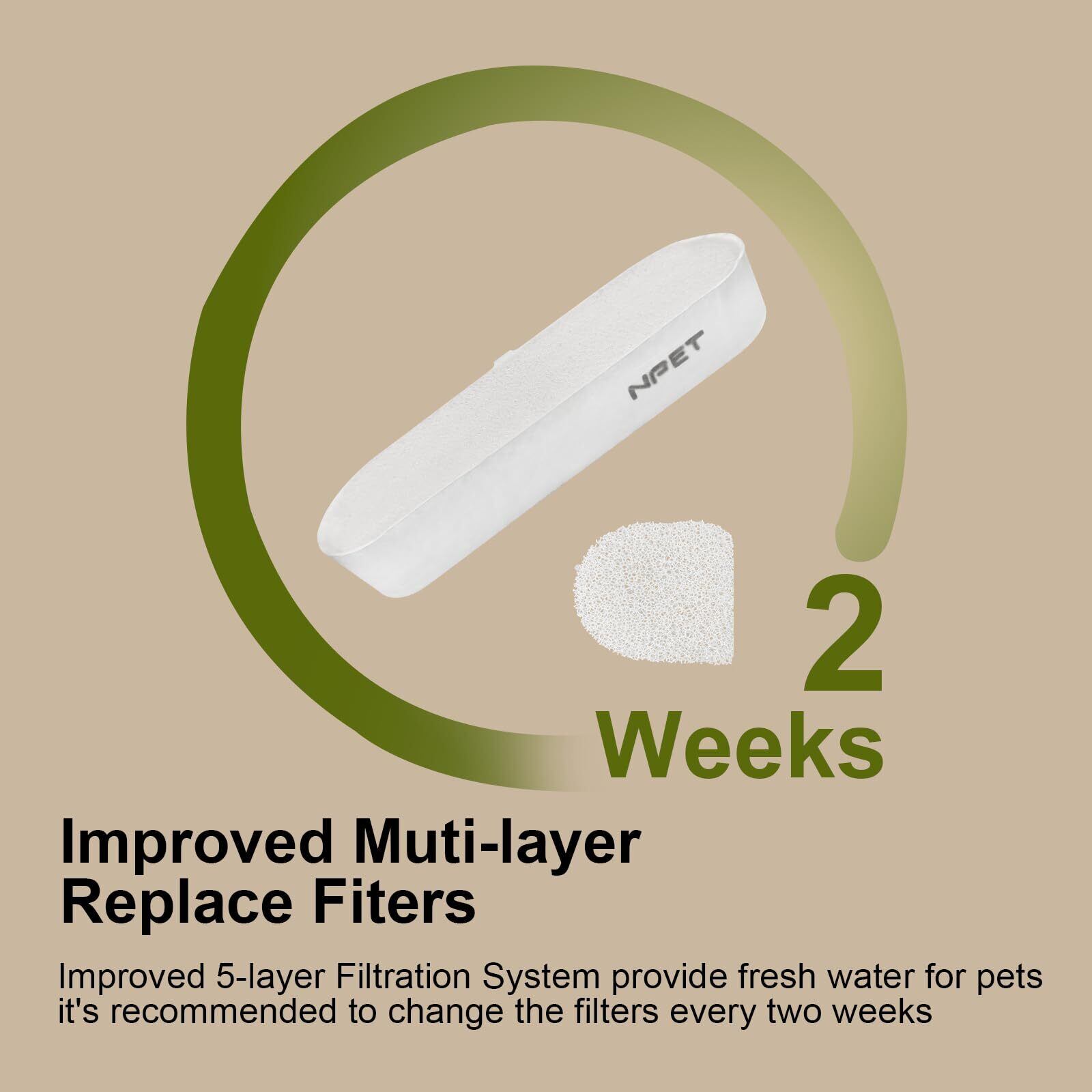 【改良点1】改良された5層ろ過システム。1.高密度スポンジがゴミを除去します。2.活性炭が臭いを効果的に取り除きます。3.イオン交換樹脂が硬水を軟化する。4.ナノシルバ一ネオが細菌の繁殖を抑える。5.不織布が粘液の生成を防ぎ、旧バージョンよりも水を清潔に保ちます。