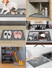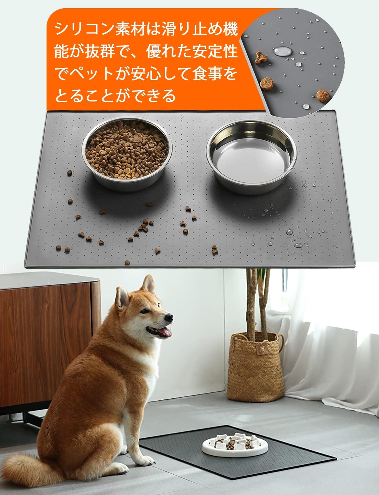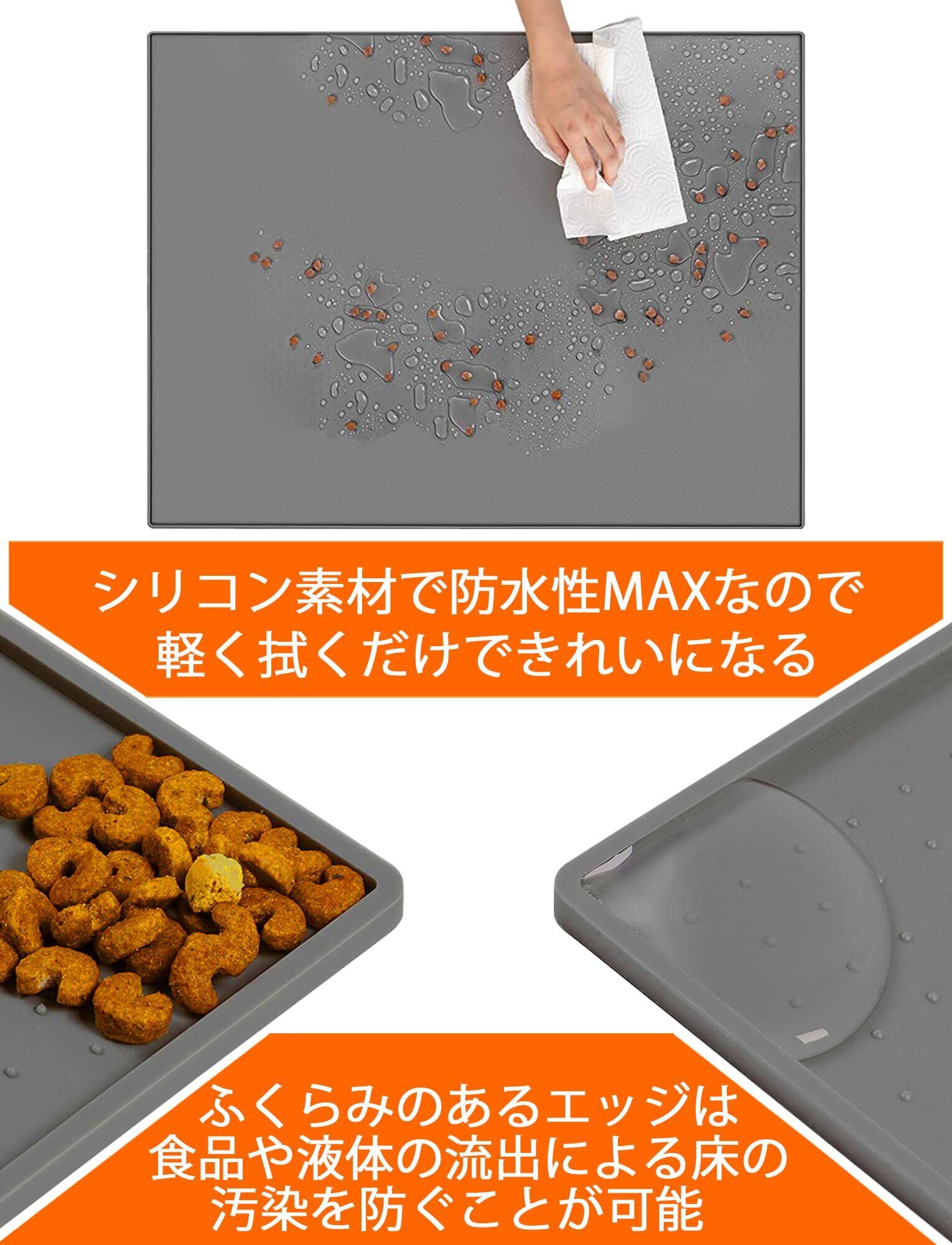 MKUTO ペットマット 猫 犬 食事マット シリコン製 給餌マット 猫砂マット トイレトレーマット 滑り止め 溢れ止め 撥水 防水 防汚 丸洗い(60x 40cm,グレー)