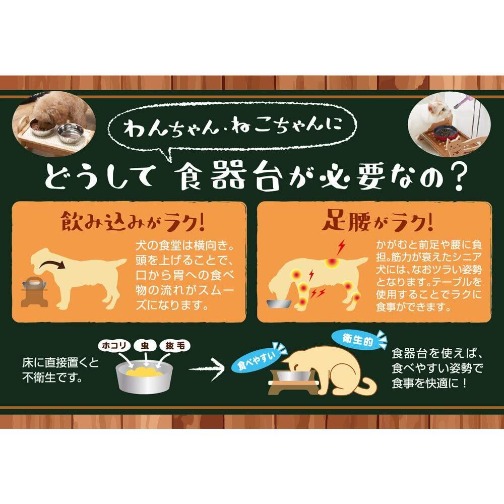●樹脂製でお手入れが簡単の「外せる!」「洗える!」テーブル、すべり止め付きで食器をホールド。 ●平置きと斜め置きが選べるので、食べかたに合わせてセットできる。 ●斜め置きにすれば、フードが前に集まるので食べやすい。 ●テーブルに突起が付いているので、食器が落ちにくい(平置き時は突起を後ろへ(後ろに落ちにくい)、斜め置き時は突起を前へ(前に落ちにくい)、トレーに食器を載せたまま移動できます。 ●高さ3・5・7cm。