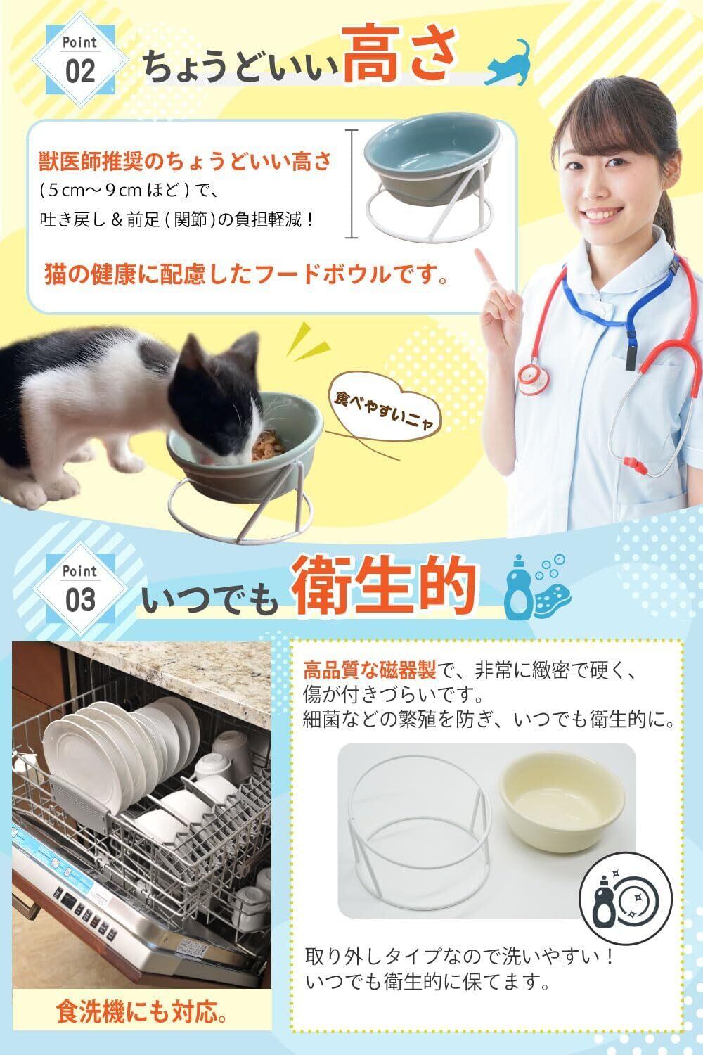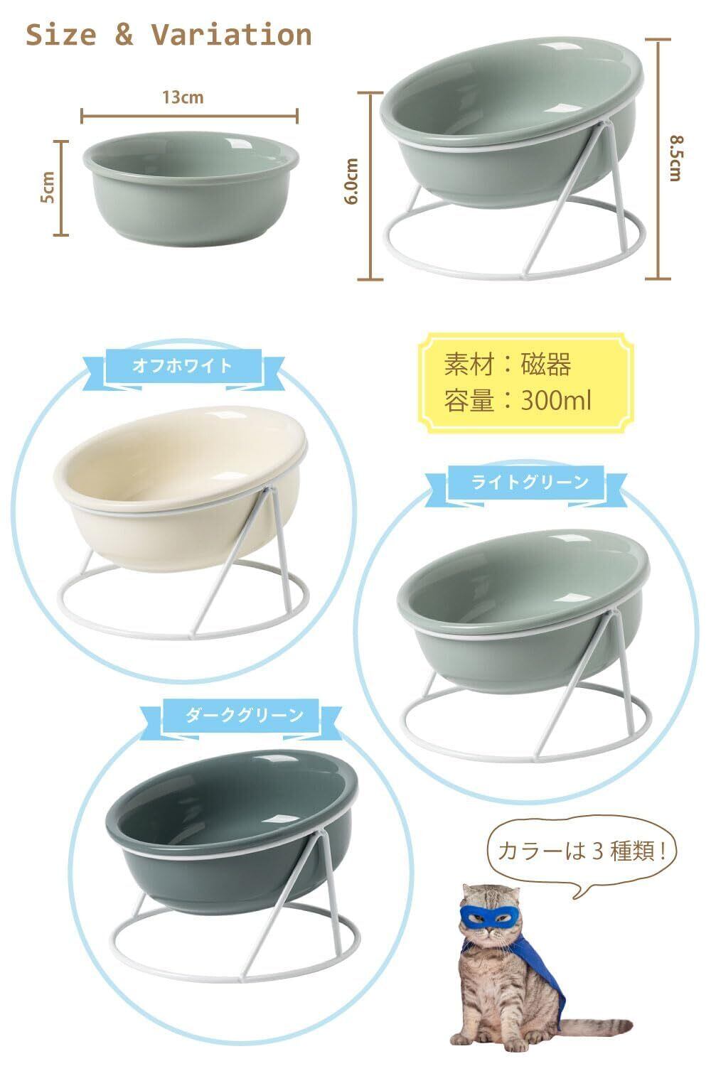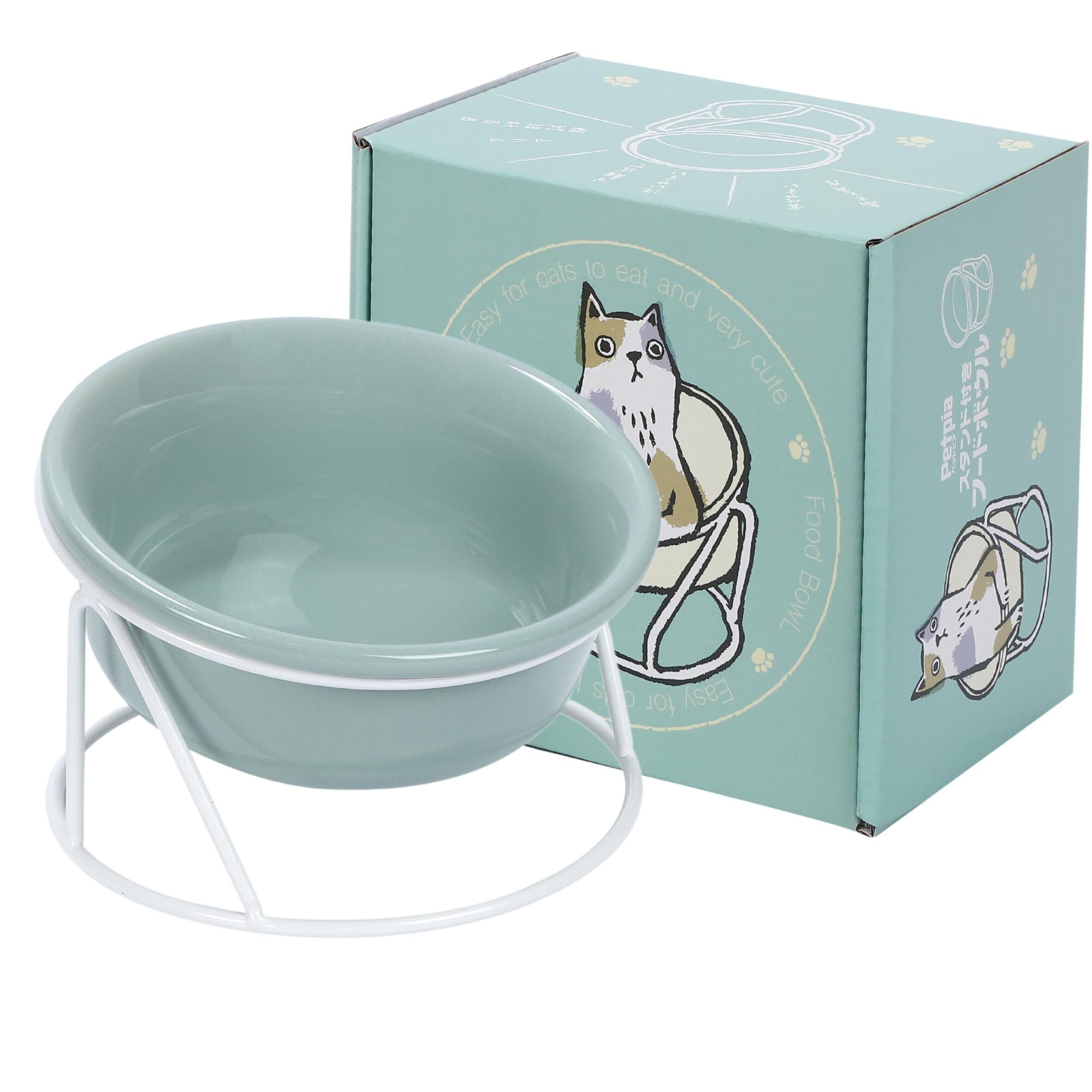 【獣医師監修】Petpia 猫 皿 餌皿 食器 水飲み皿 フードボウル 水飲み器 ペット用品 磁器製 300ml 15度の傾斜 取り外し式 (ライトグリーン)