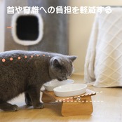 「首や脊椎への負担を軽減」傾斜つきの台座で高さがあるので、脊椎と首への負担が少なく自然姿勢にぴったりで、吐き戻しや嘔吐など症状を軽減してくれて、猫は気楽に食事できます。本体は一定の重さがあり、滑り止めシールも付けて滑りにくく、安定感がよいです。