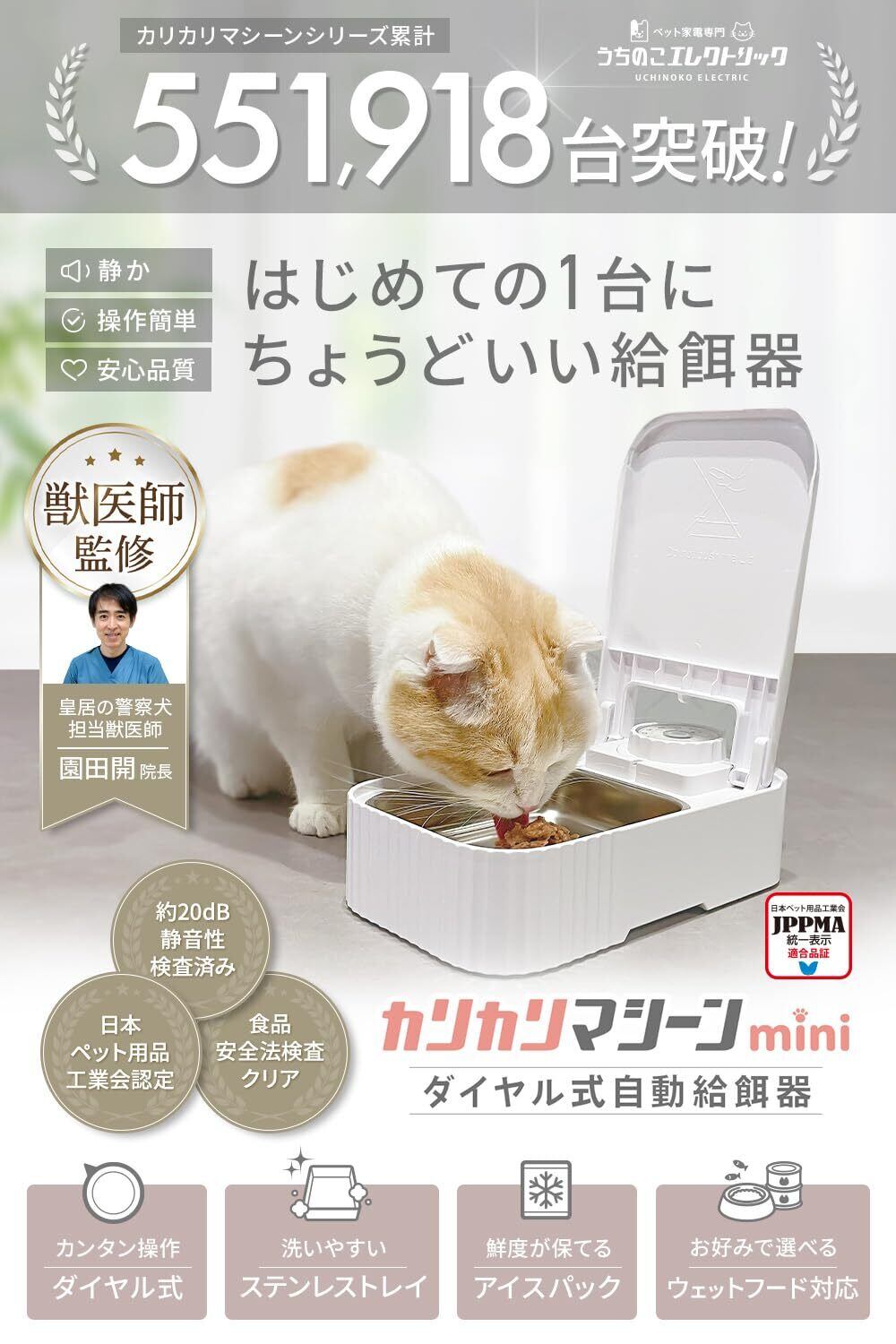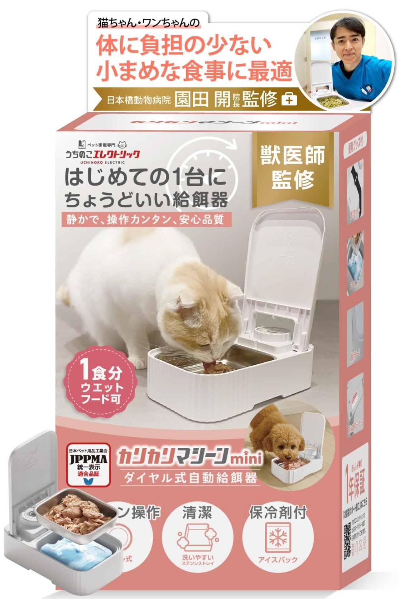 【獣医師監修】 カリカリマシーンmini 猫 犬 ペット 自動給餌器 タイマー式 うちのこエレクトリック 1食分 ウェットフード対応 ダイヤル式操作 ステンレス トレイ 保冷剤付き 日本メーカー