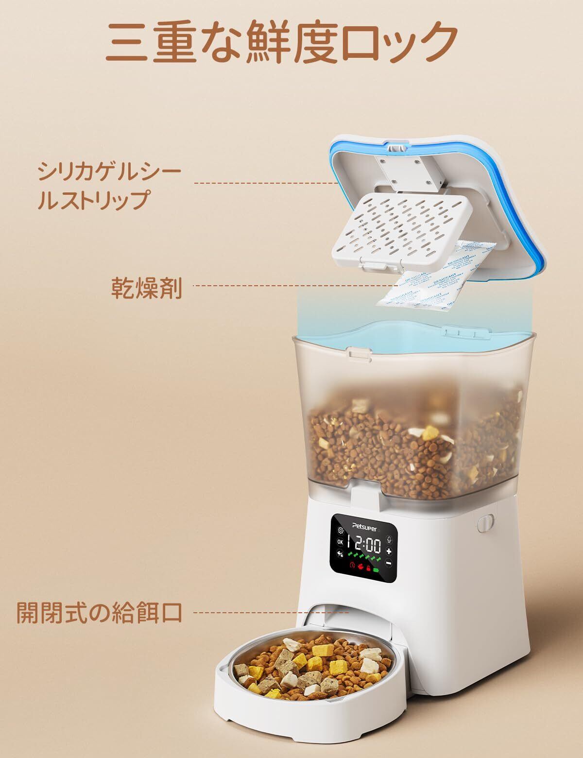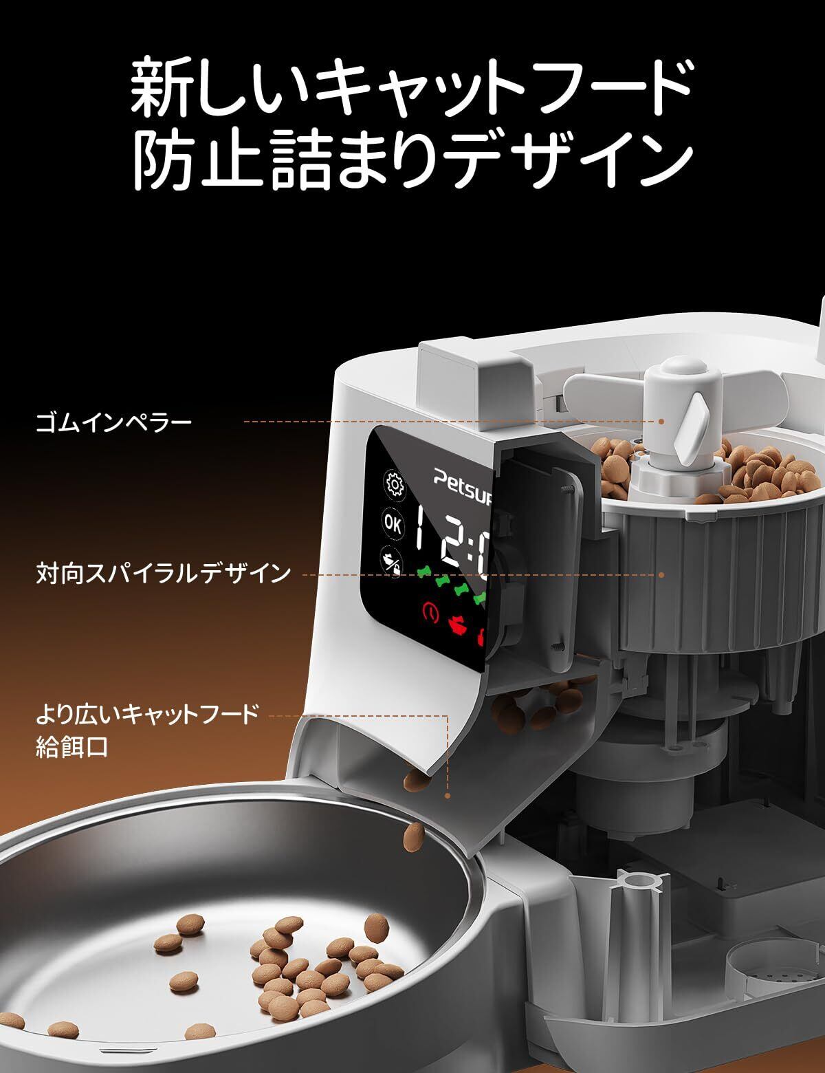【高品質な3L大容量】半透明タイプ給餌器は餌の残量が一目で分かるので手間いらず!また、たっぷり入れる自動餌やり器3L大容量で、残業、短期出張などの時にも安心できます。高品質の304ステンレス製フードトレイ、猫のニキビを防ぐ、304ステンレス製で汚れが水洗いでサッと落ち、乾きが良くアレルギー体質のワンちゃんにも安心してお使い頂けます。