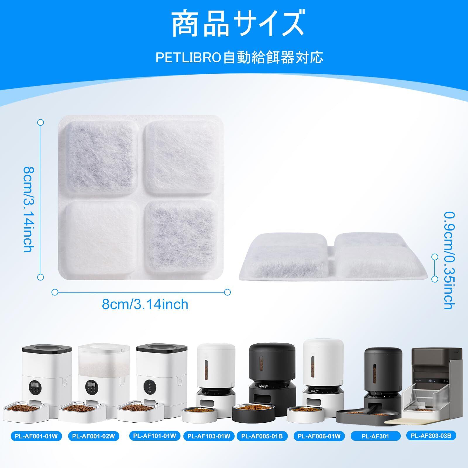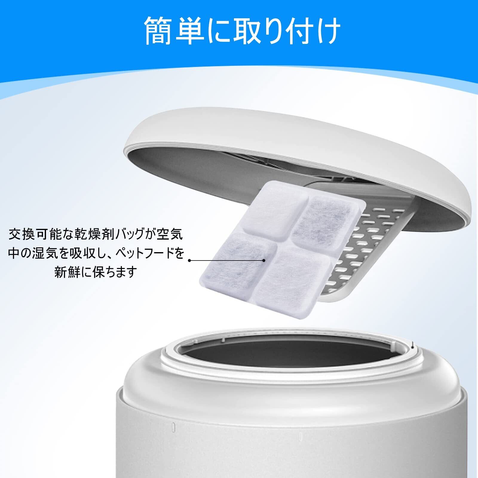 使いやすいサイズでデザイン: 約8×8cmのコンパクトなサイズで、ペットフード用乾燥剤は手軽に取り扱えます。PETLIBRO自動給餌器の専用サイズに合わせて設計され、他の機種でも使用可能ですが、サイズを確認することをおすすめします。