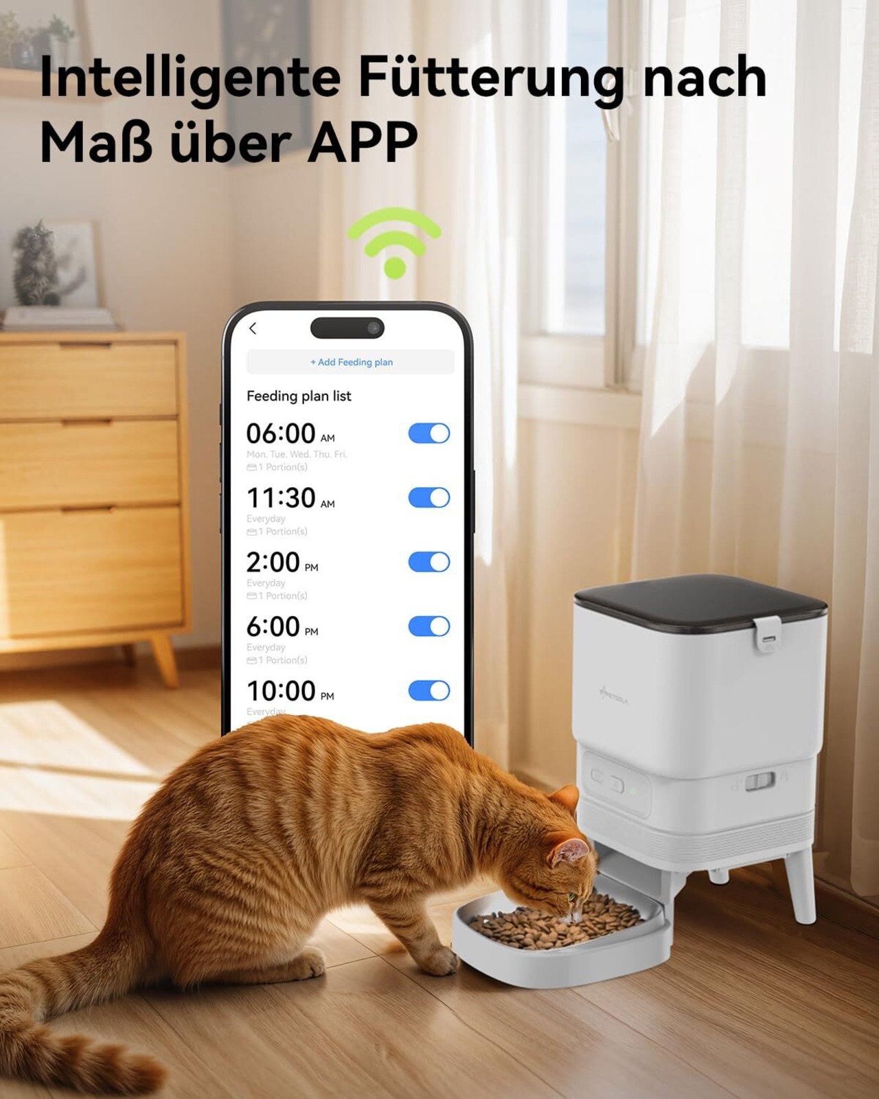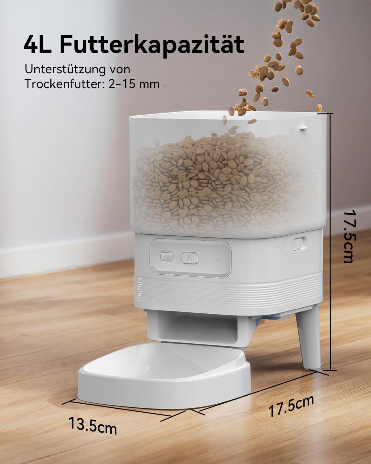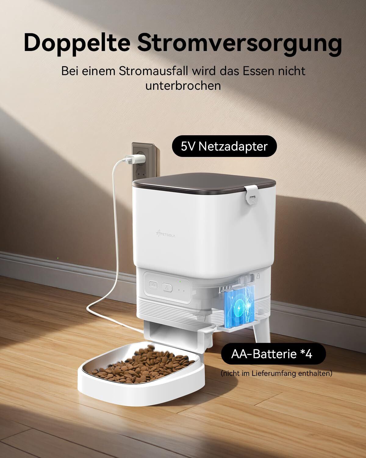 APD APETDOLA 自動給餌器 猫 アプリ遠隔操作 えさやり器 定時定量 1日6食 犬 自動餌やり機 音声録音 4L容量 鮮度保持 2WAY給電 WiFi式 スマホ遠隔操作 操作簡単 猫 中小型犬用 iOS Android対応 FDG30 ホワイト