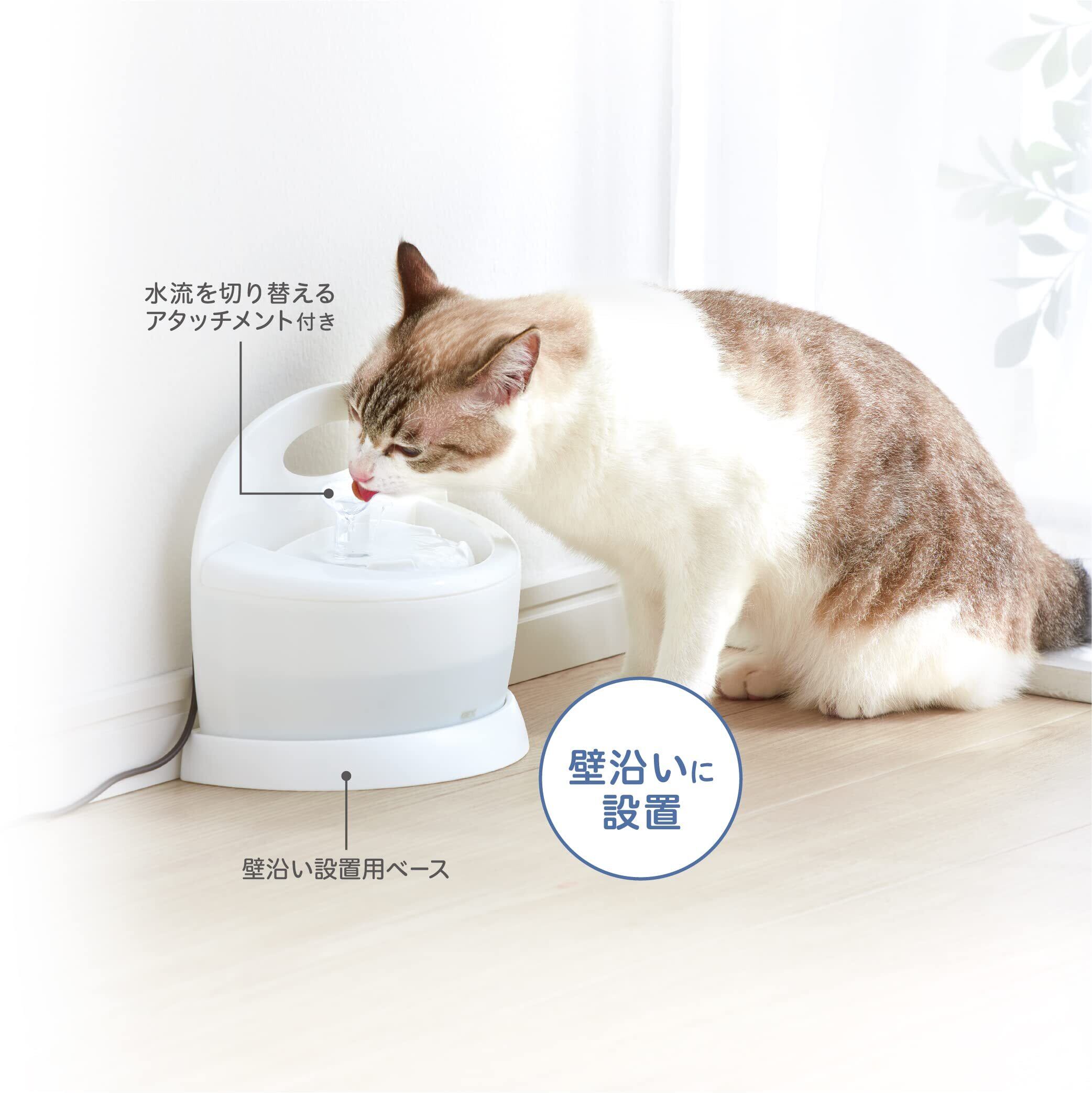 フィルターで食べカス、被毛、ホコリをしっかりキャッチ! 軟水化フィルター採用(1枚付き)!軟水化フィルター採用・・・・イオニック(イオン交換樹脂)が水道水のマグネシウム、カルシウムを除去してワンちゃん、ネコちゃんにやさしい水(軟水)に!・活性炭配合でカルキ臭も吸着 獣医師推奨・・・流れる水にワンちゃん、ネコちゃんは興味を示します。飲水量アップに貢献します。※顧問獣医師推奨となります。