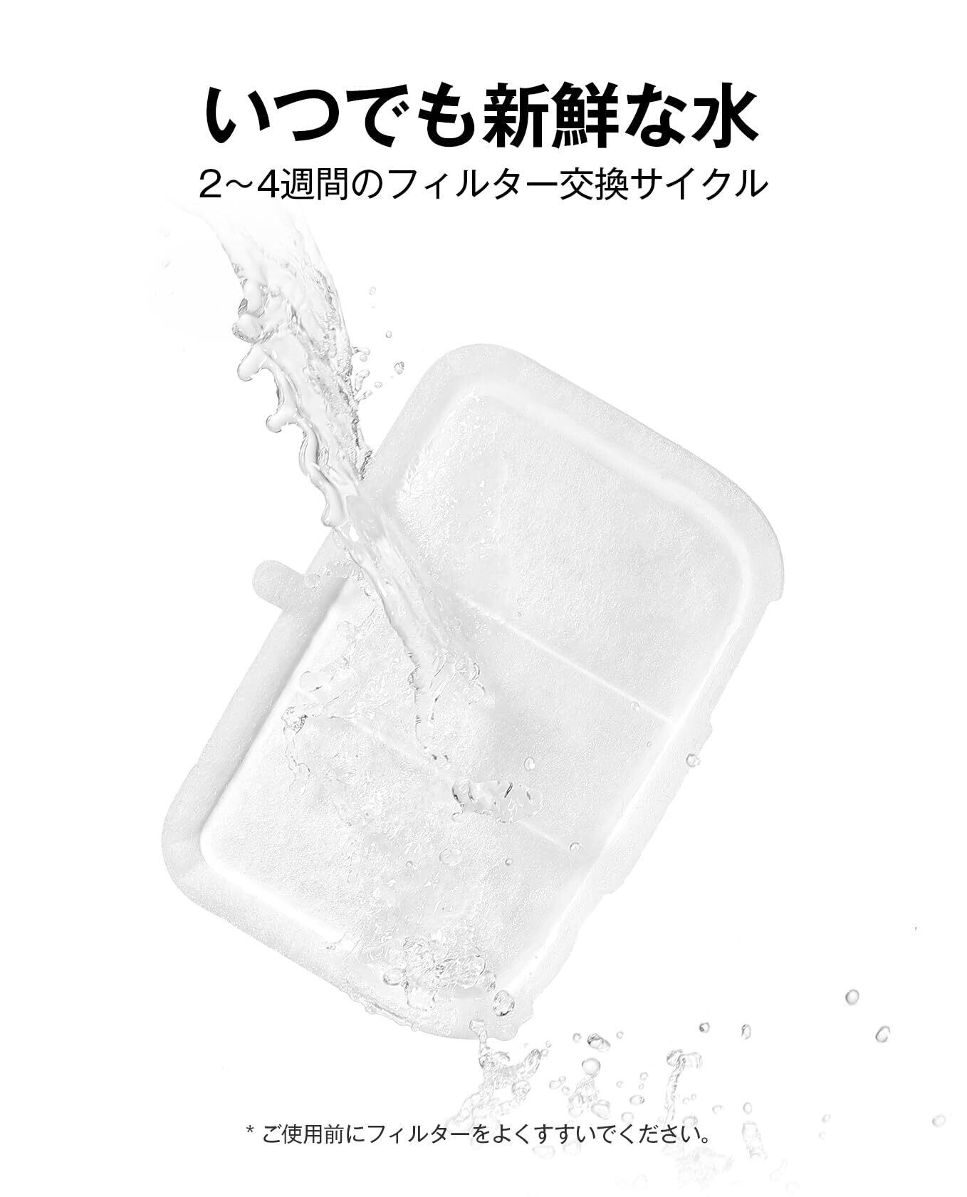 初回の取り扱い方:梱包袋から取り出したフィルターを水に2回それぞれ1分浸してください