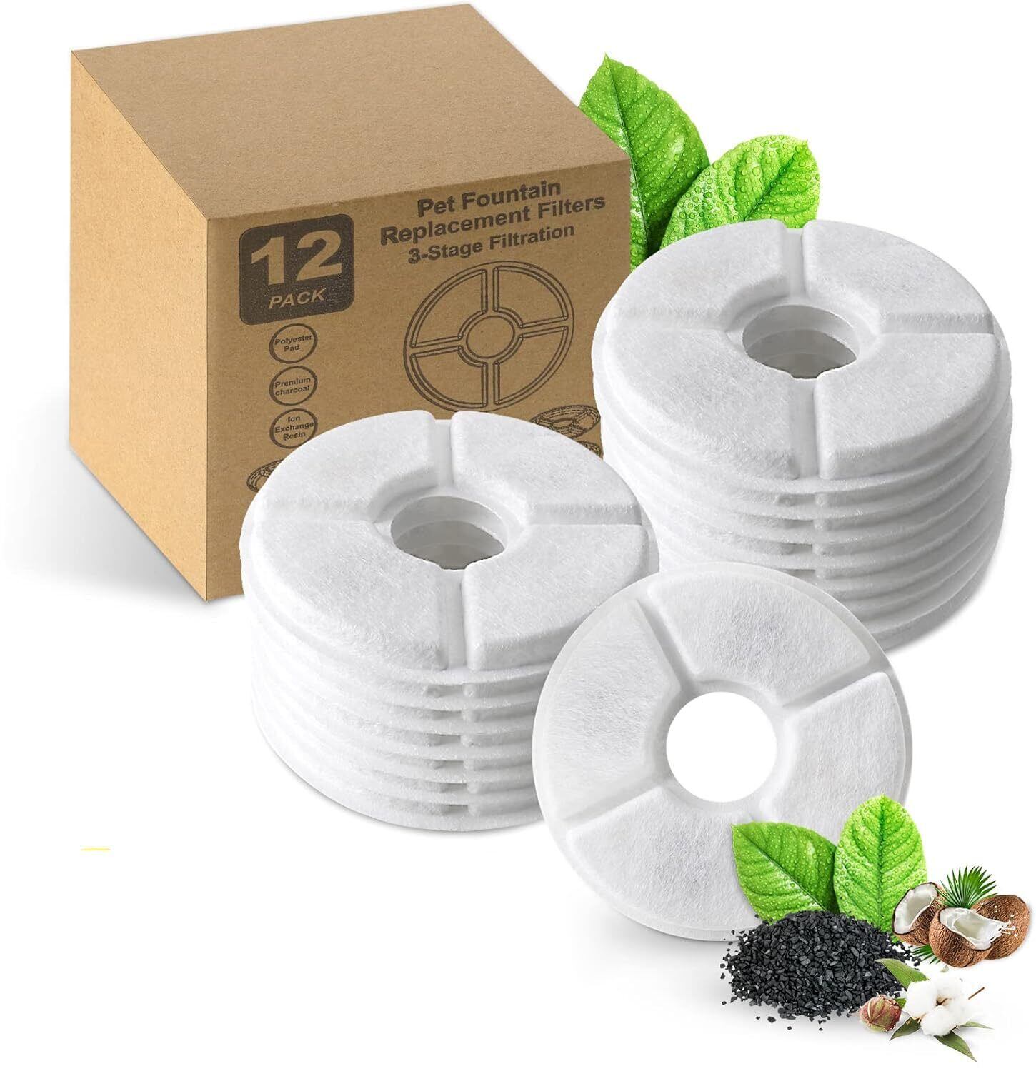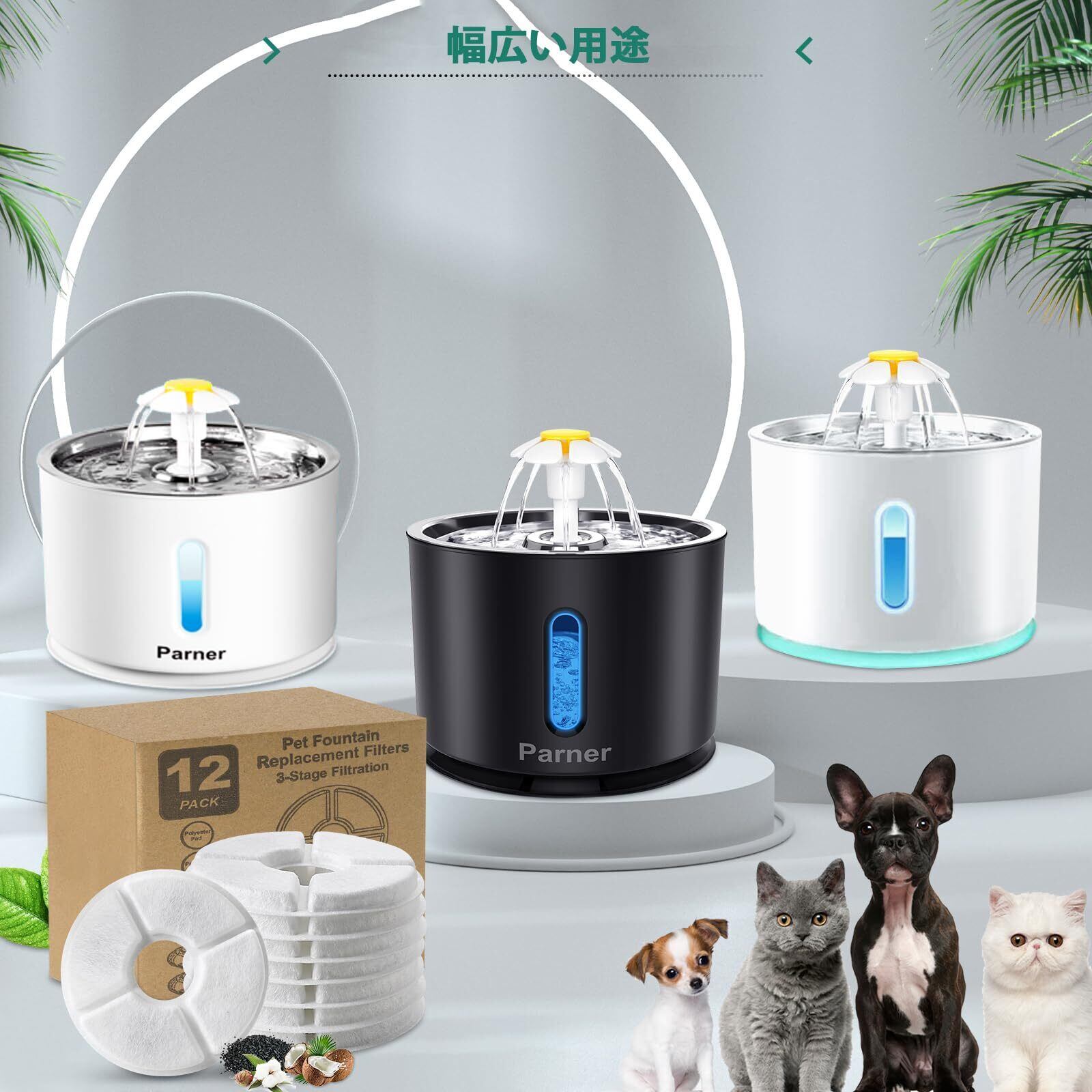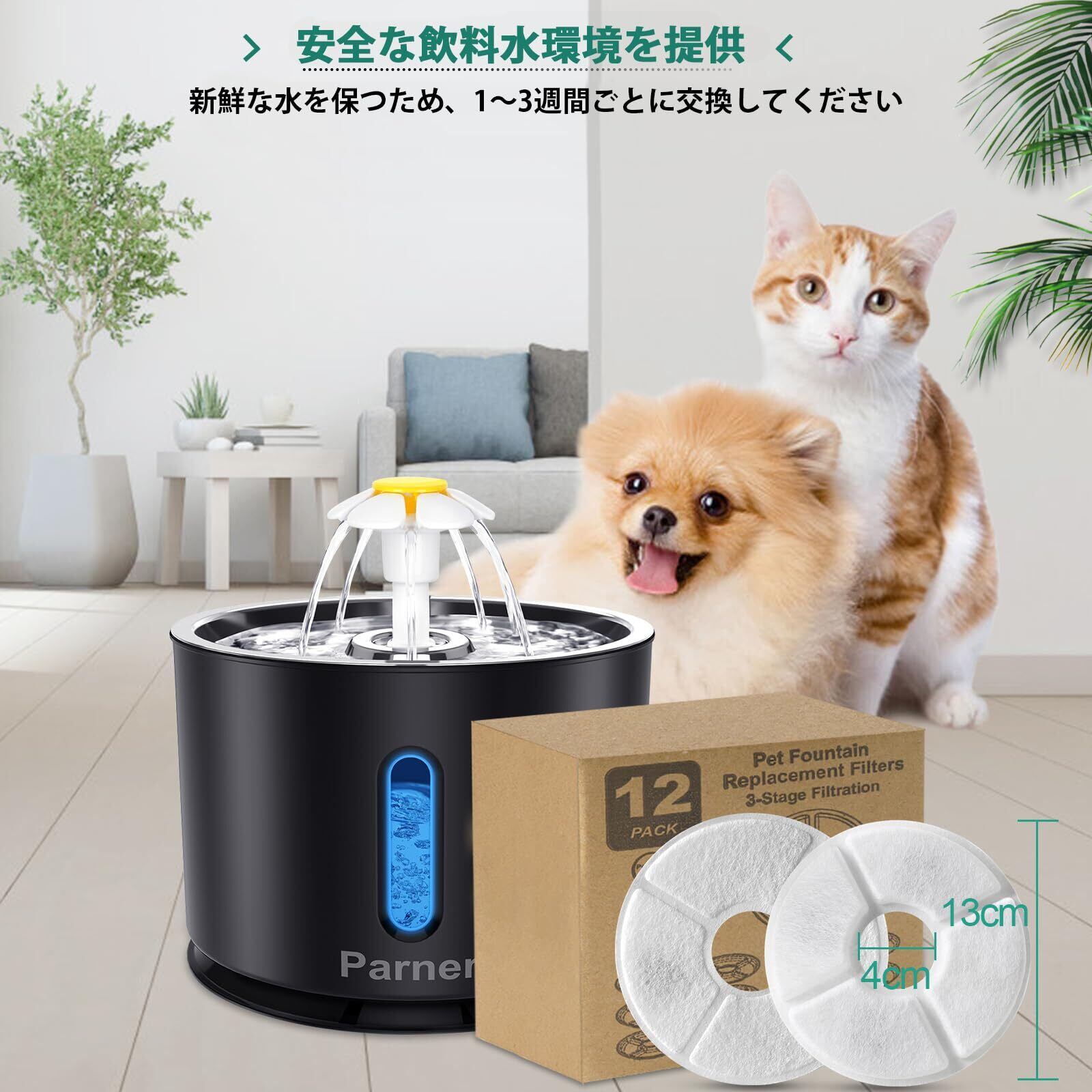 Parner【2025推奨&昇級版】猫 水 給水器フィルター (12個入) 円形 猫 犬 みずのみ器交換用フィルター 軟水化フィルター イオン交換樹脂 清潔 三重濾過 お留守番対応 下部尿路健康維持(1.5L -2.4Lペット自動給水器に適応)