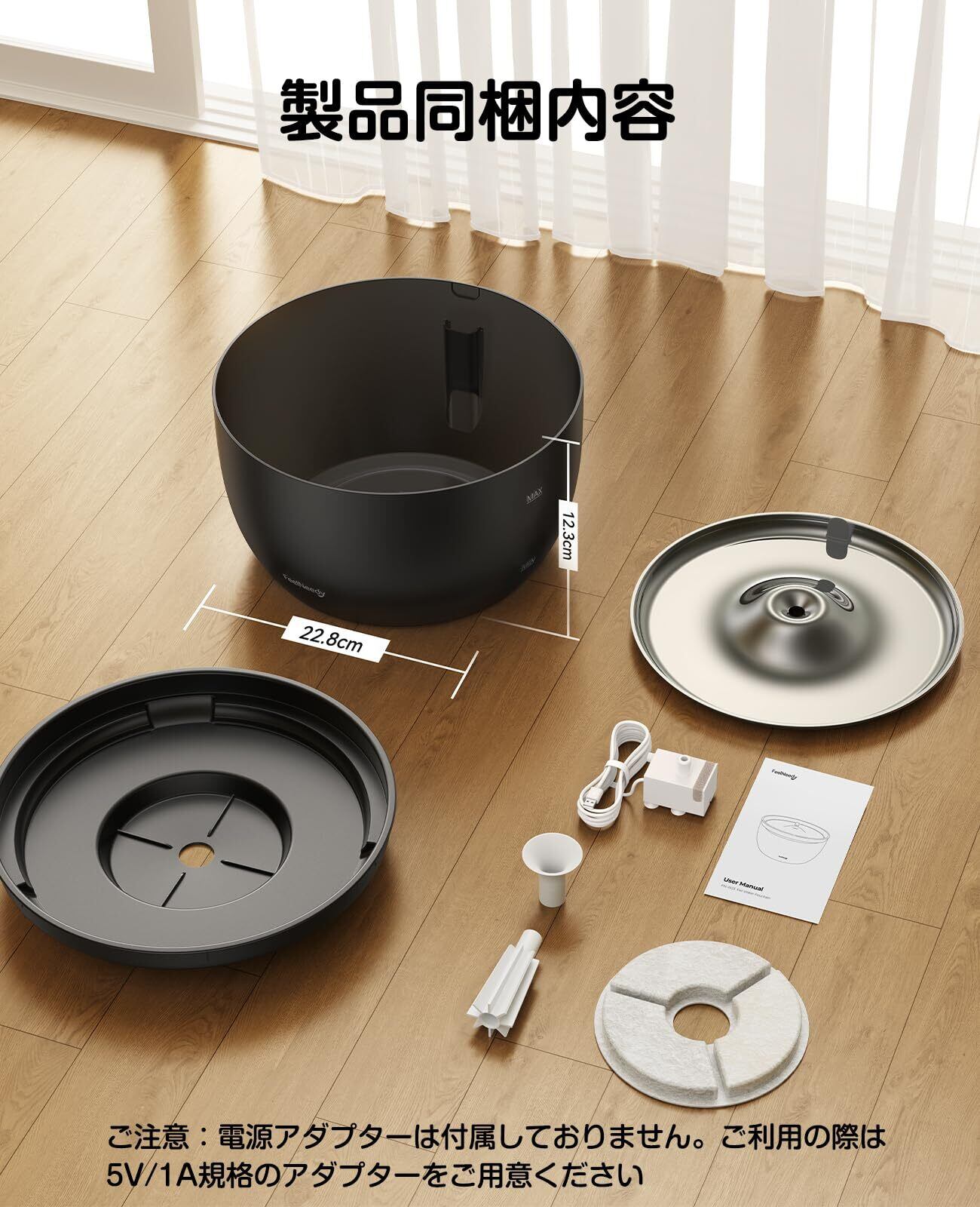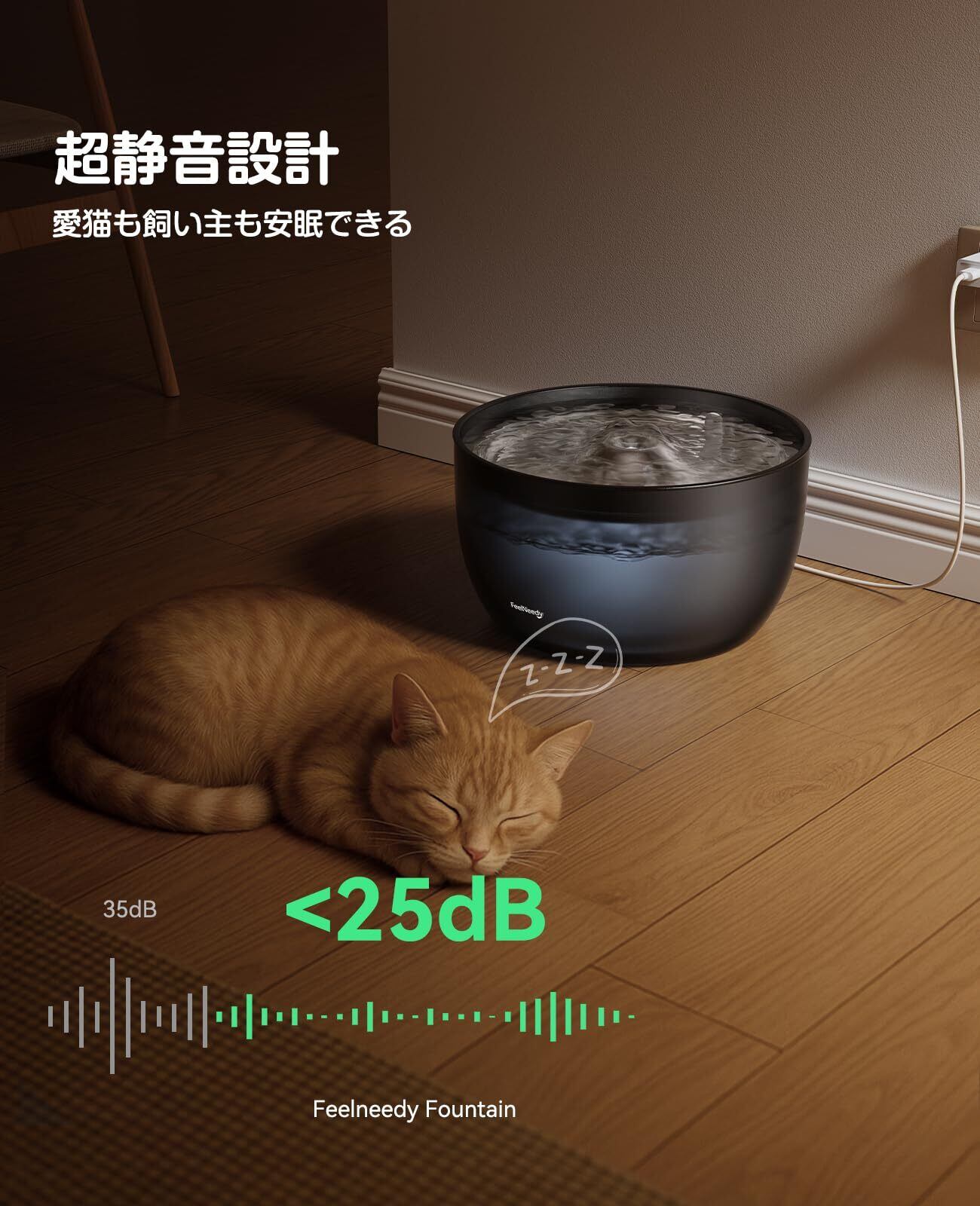 超静音自動給水器:このfeelneedy猫水飲み器は、煩わしい流水音や騒音を発生せず、ほぼ無音に等しい静かさです。飼い主様の睡眠を妨げる心配がなく、愛猫も音に驚くことはありません。