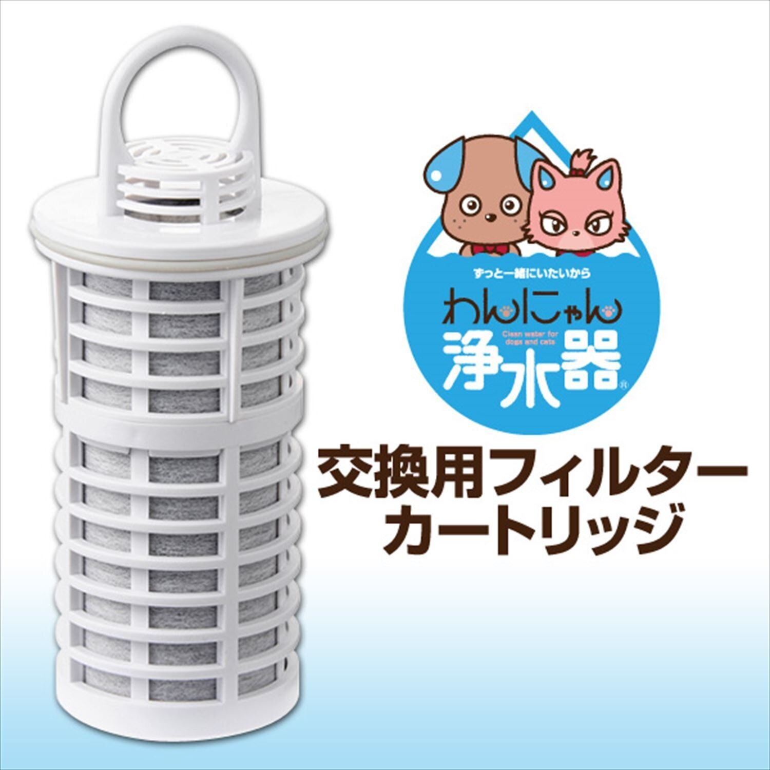 ペットに最適な飲料水を造るわんにゃん浄水器の交換フィルターカートリッジ。ミクロファイン活性炭のチカラで塩素などのJIS13項目すべてを除去。イオン交換樹脂により軟水化。