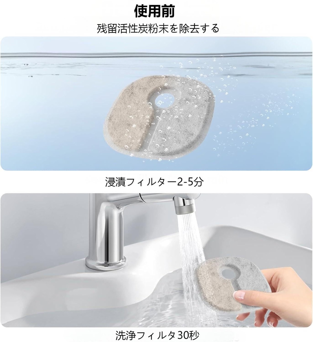 【暖かいヒント】猫水フィルター交換品を3~5分間水に浸し、使用前に水道水で完全に洗い流してください。20-30日ごとに猫用ウォーターサーバーフィルターを交換して、ペット用ウォーターサーバーを維持し、水を新鮮に清潔に保つことをお勧めします。