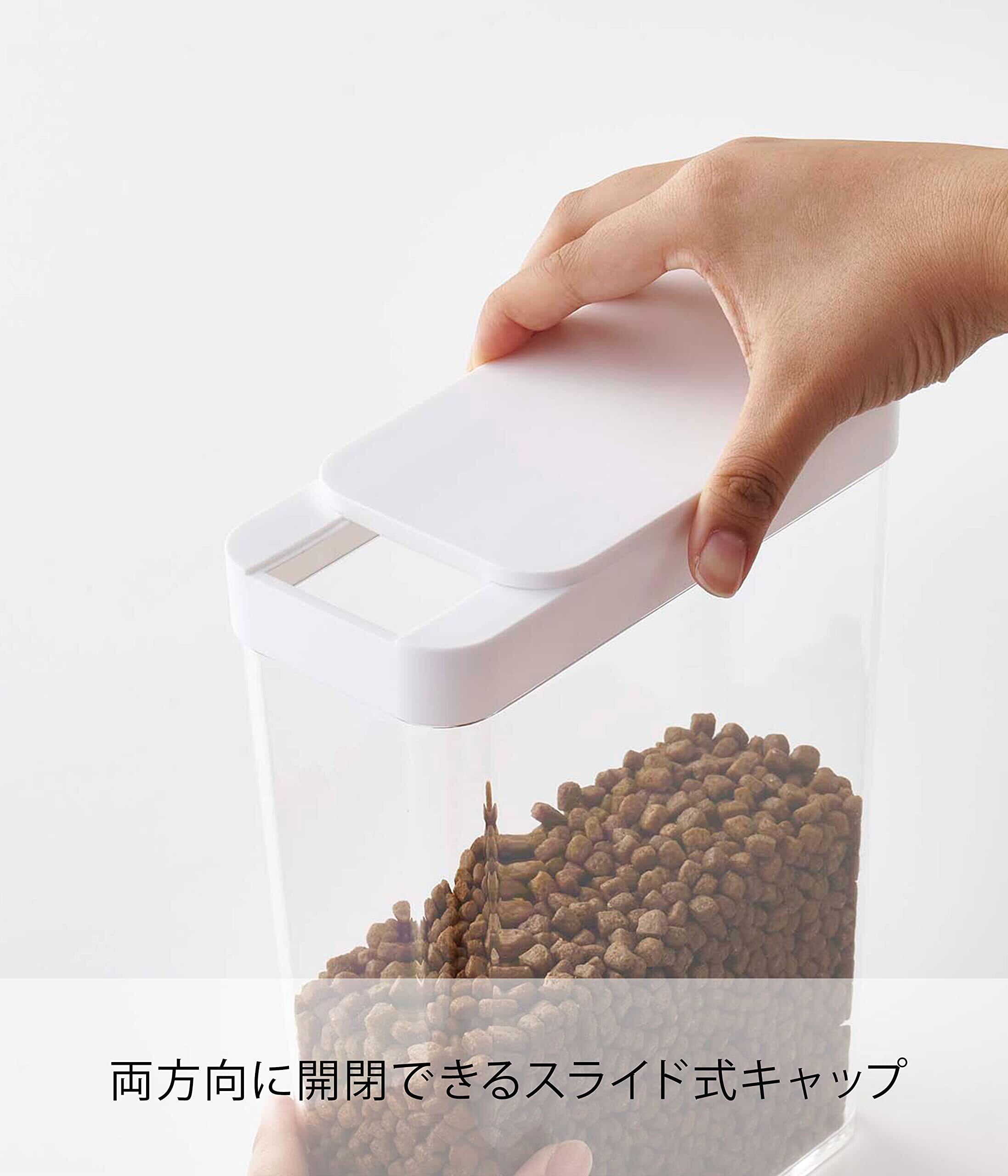 スライドするだけで簡単に蓋が開閉できる1.2㎏用ペットフードストッカー!