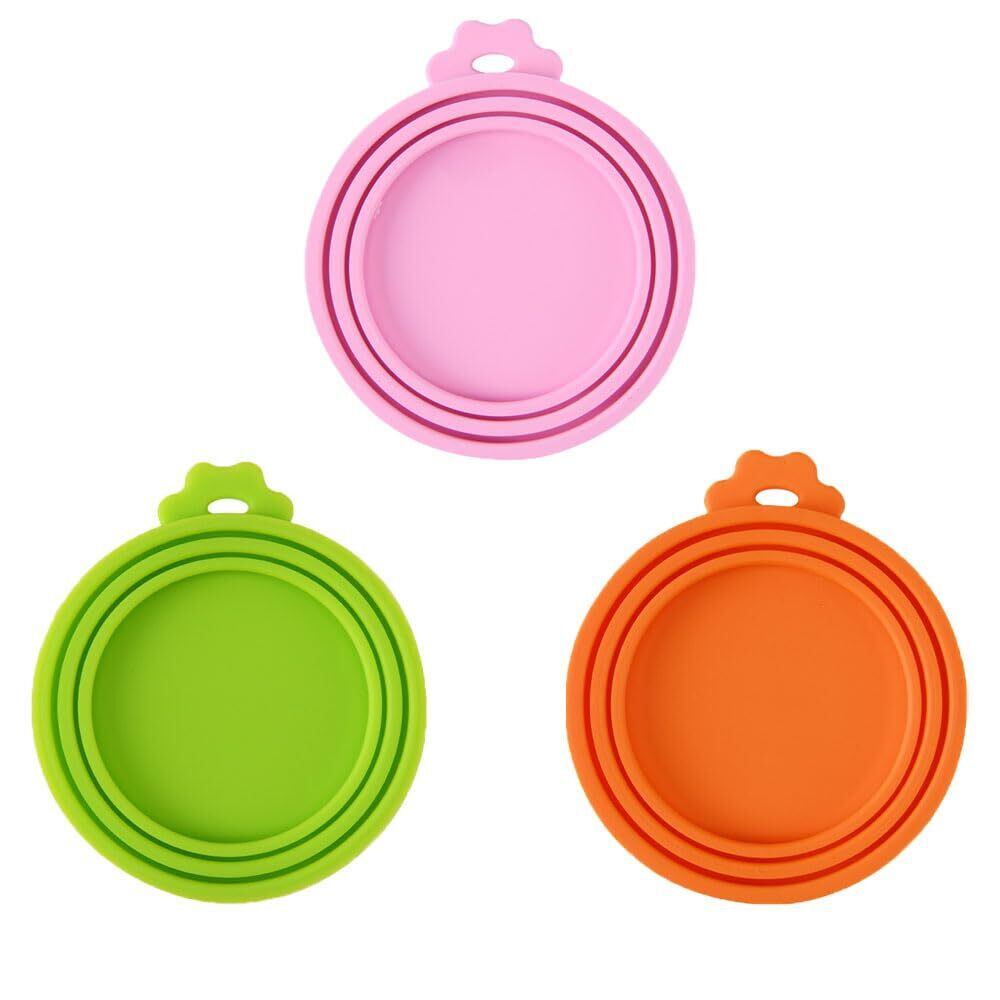 ペット缶詰の蓋密封缶詰の蓋シリカゲル缶詰の蓋保存しやすい密封容器缶詰の鮮度保持蓋グリーン+オレンジ+ピンクの3点セットは6.5 CM、7.5 CM、8.5 CMの3つの口径の缶詰に適している
