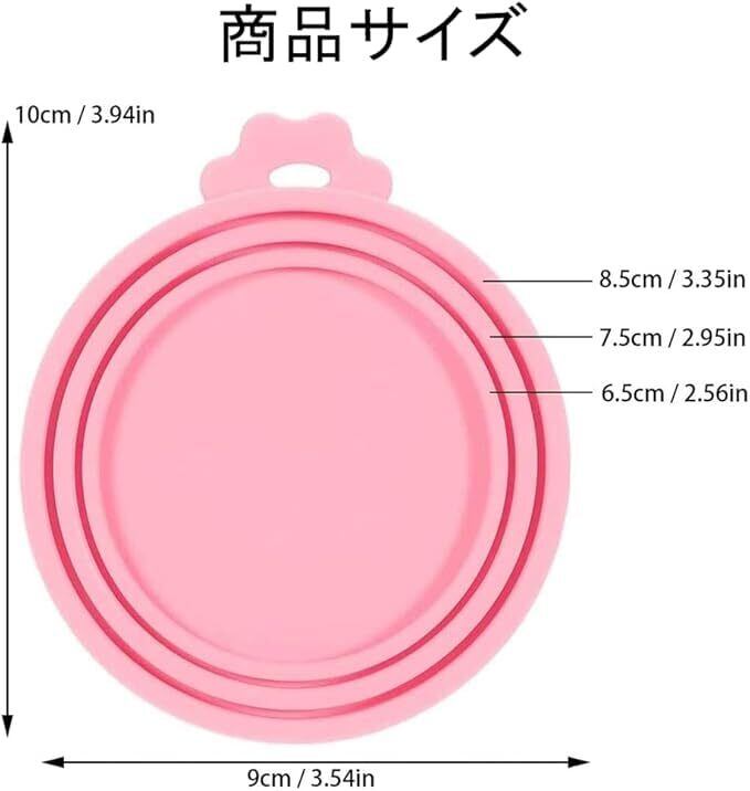 【製品規格】:製品サイズは約10*9*2 cmで、6.5 CM、7.5 CM、8.5 CMの3つの口径の缶詰に適用され、製品重量は約105 gで、緑+オレンジ+ピンクの3点セット。