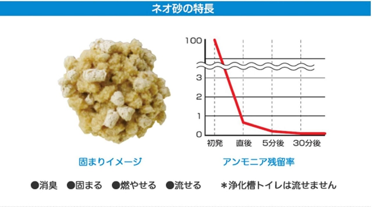 尿と臭いをガッチリ吸収します。吸収した部分は、水洗トイレに流せますので後処理が簡単です。木粉が主原料なので燃やせます。また、生ゴミとして処理できます。各自治体のゴミ処理方法に従ってください。ひのきに含まれる消臭成分フィトンチッドが、排泄物のイヤな臭いを消臭し、トイレを清潔に保ちます。