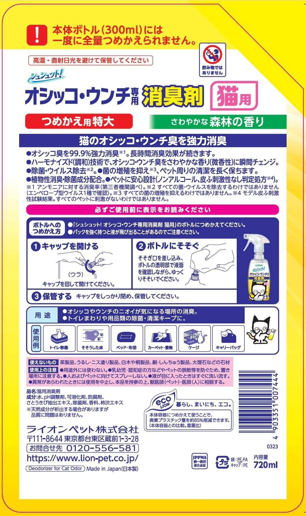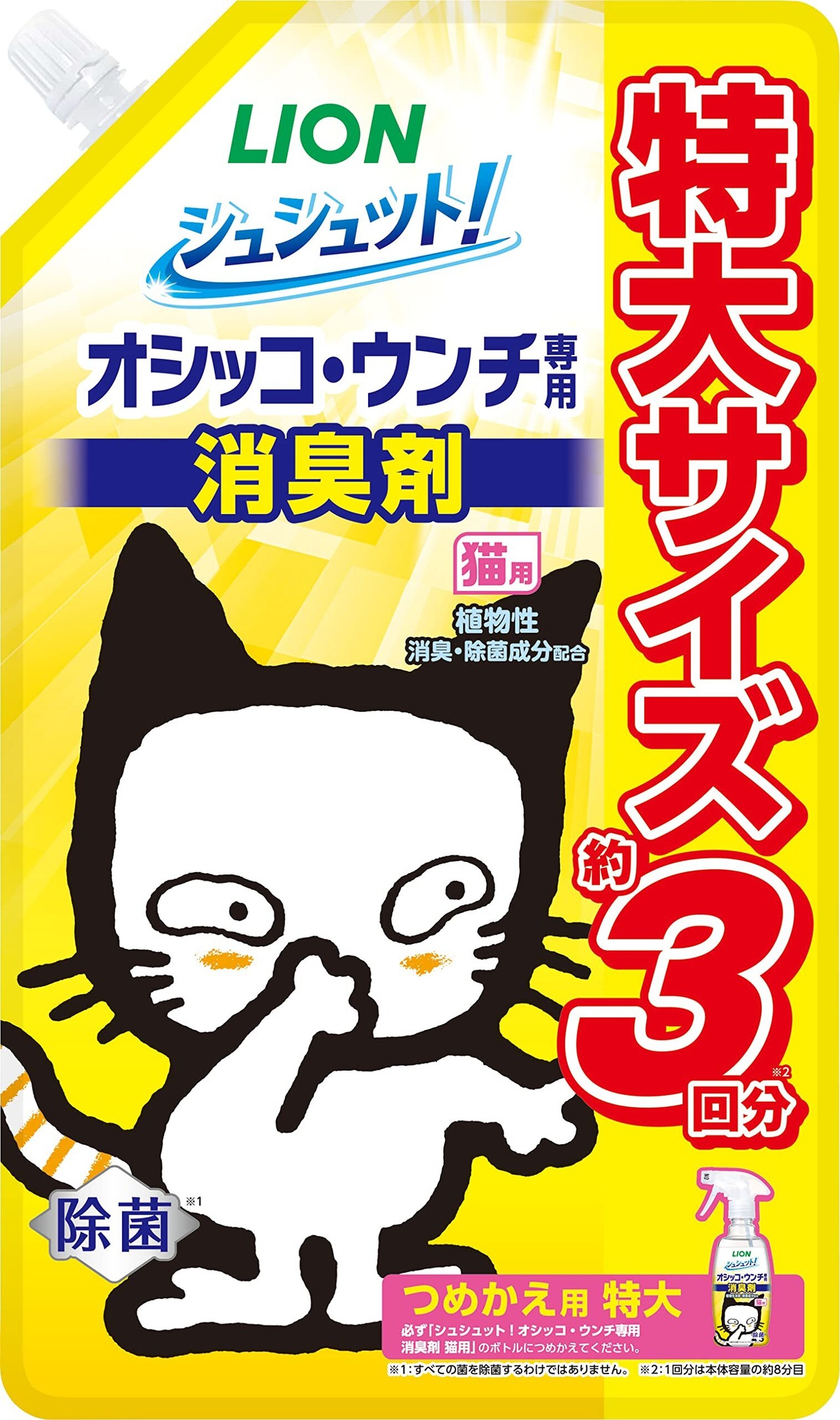 ライオン シュシュット! オシッコ・ウンチ専用消臭剤 猫用 つめかえ特大容量 720㎖ 約3回分 LIONPET