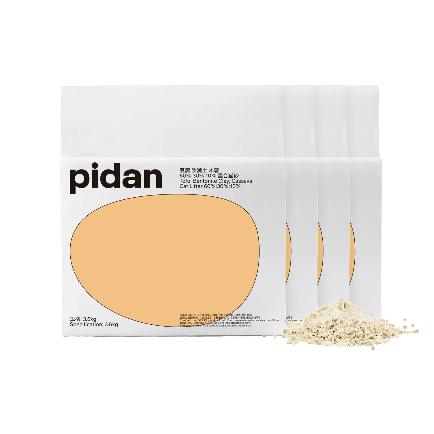 pidan 猫砂 おから 固まる ベントナイトとおから 混ぜる 脱臭 抗菌 真空パック 飛び散らない 天然素材 臭みから解放 (3.6kg×4袋)