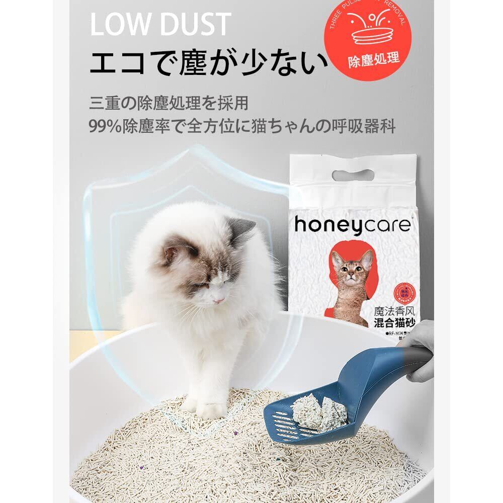 HONEYCARE ハニーケア ミックス猫砂 約5L/2.75KG*6袋セット おからとベントナイト 猫砂 猫トイレ用品 ネコ砂 固まる 混ぜる 脱臭 抗菌 真空パック 飛び散らない 天然素材 臭みから解放 トイレに流せる