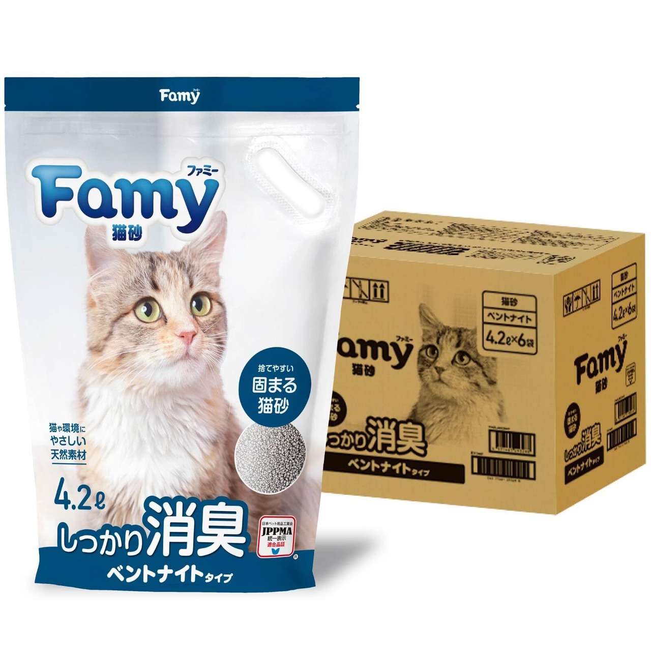 Famy ファミー 猫砂 鉱物 ベントナイト しっかり消臭 固まる猫砂 4.2L×6袋