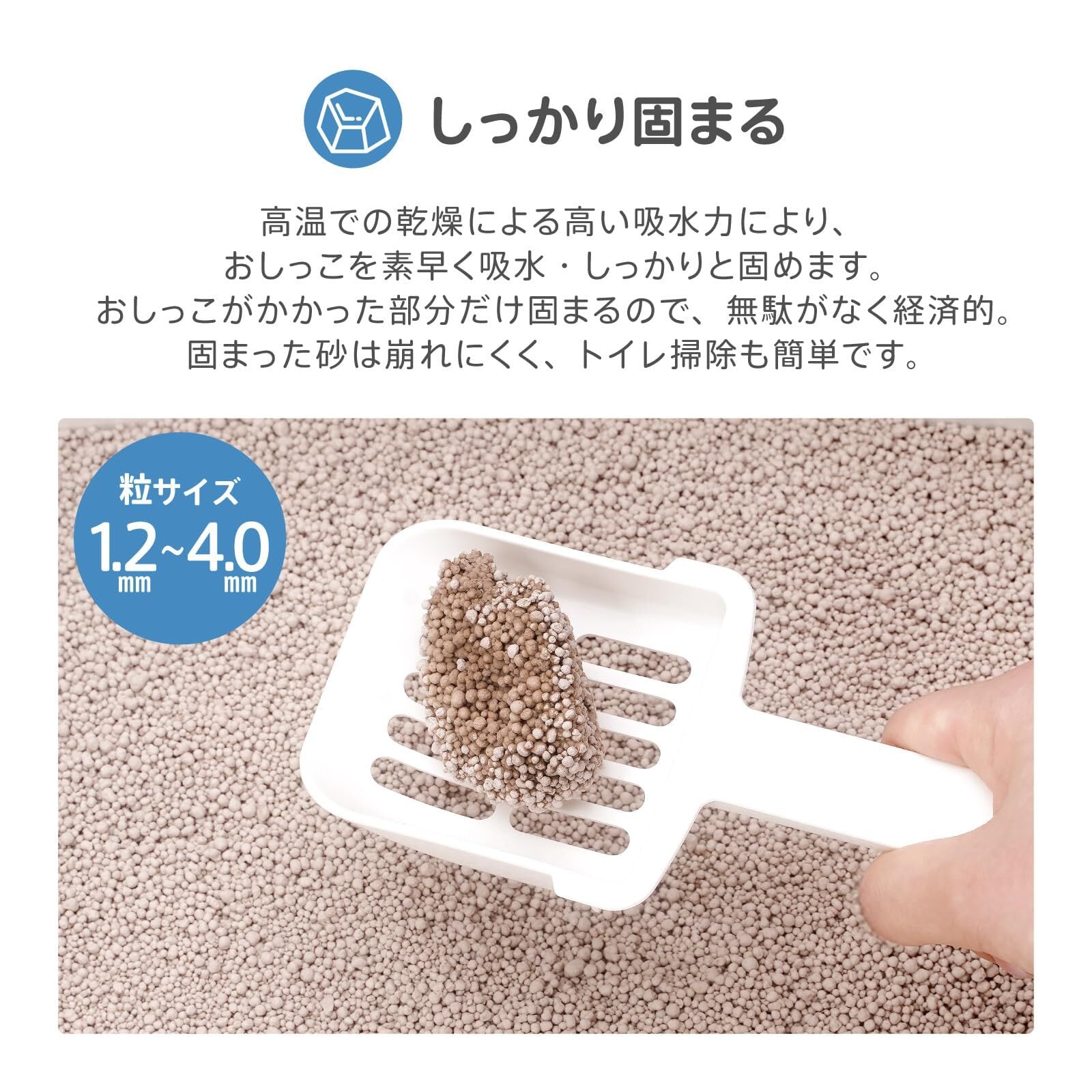 【しっかり固まる】おしっこを素早く吸水・しっかりと固めます。おしっこがかかった部分だけ固まるので、無駄がなく経済的。固まった砂は崩れにくく、トイレ掃除も簡単です。