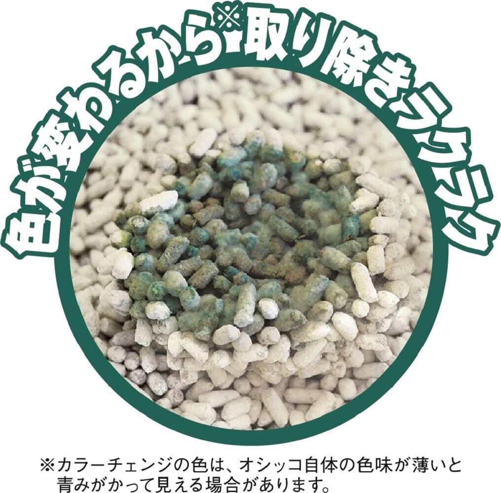 ニオイをとる砂シリーズからカラーチェンジタイプが登場。オシッコした部分がわかりやすく処理がしやすい。