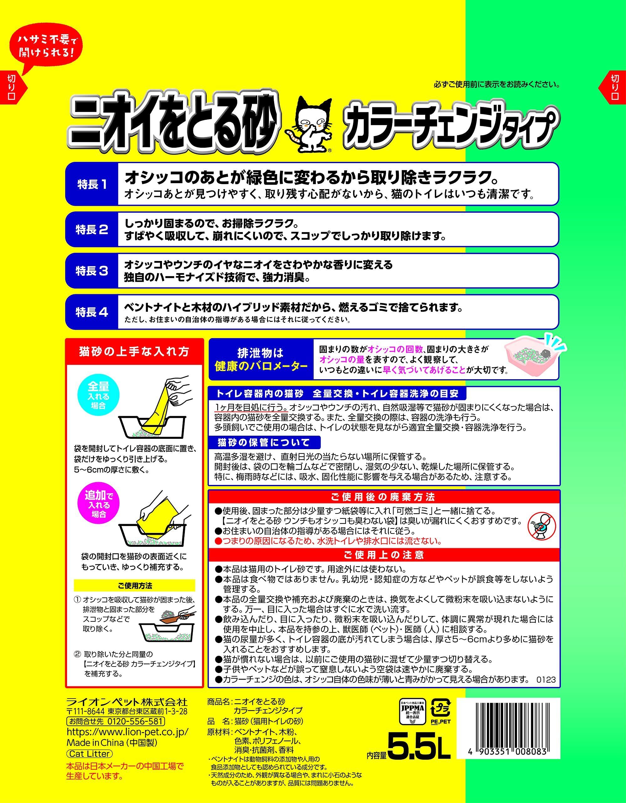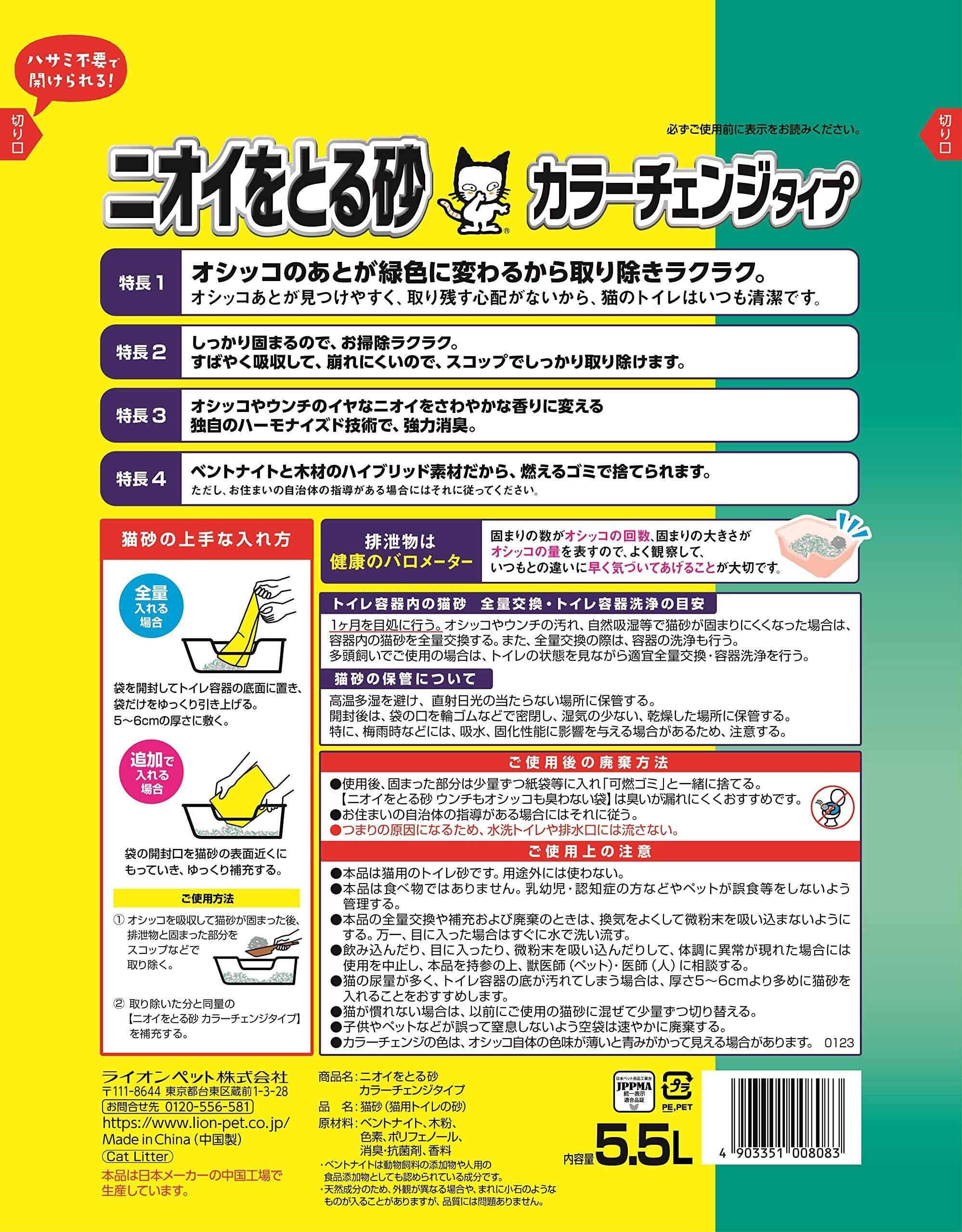 ライオン ニオイをとる砂 猫砂 カラーチェンジタイプ 5.5Lx4袋 ケース販売 LIONPET