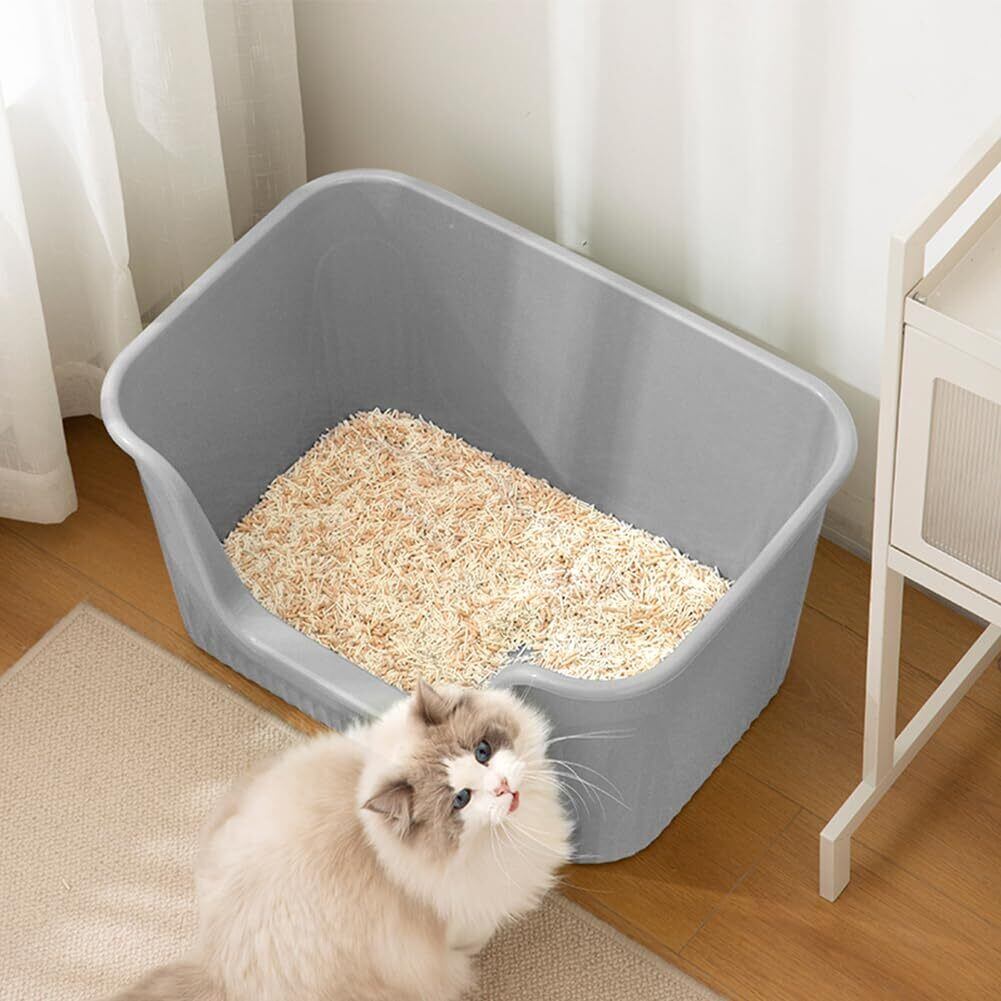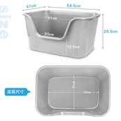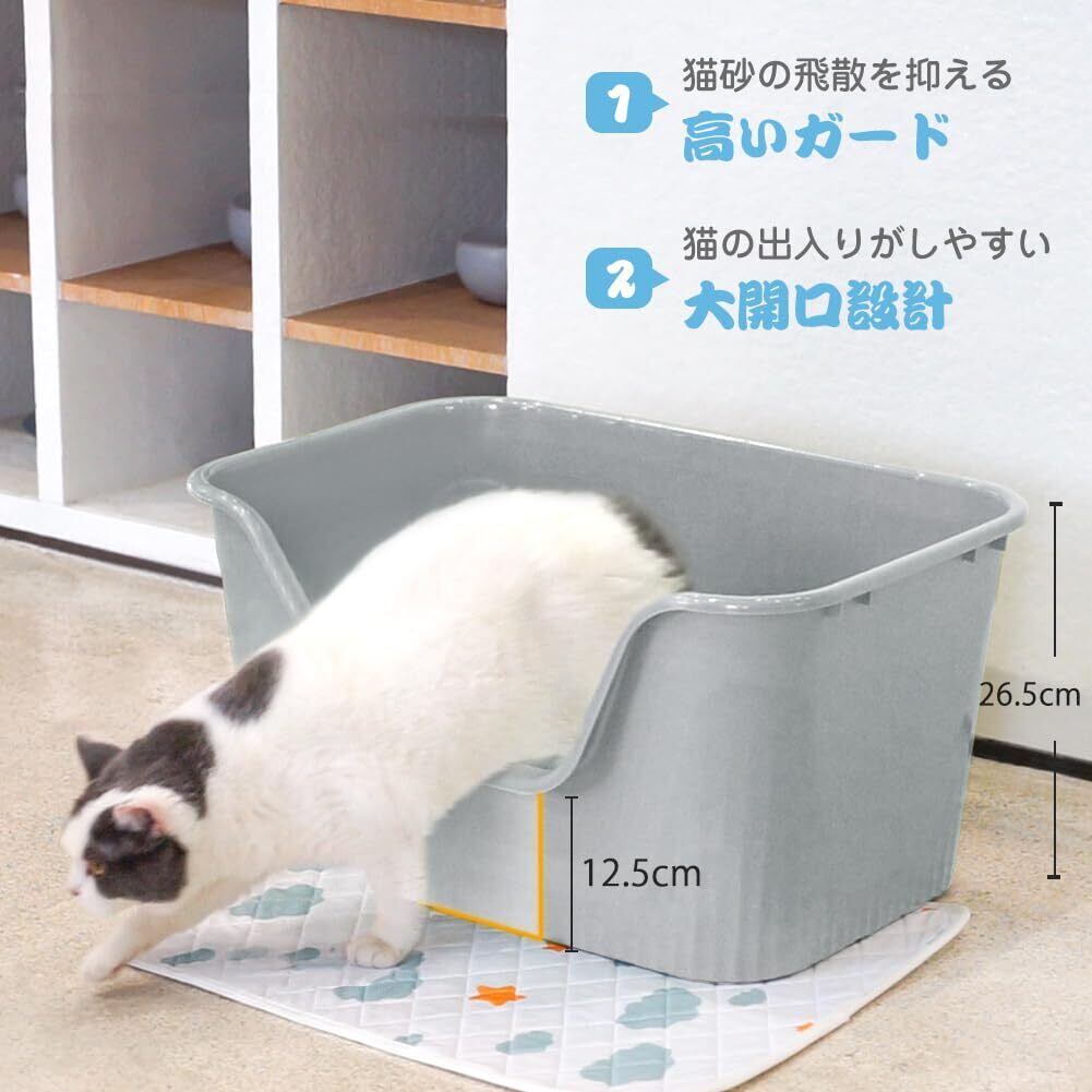 超大型猫用トイレ オープンタイプ 大きい猫 多猫 本体 簡単掃除 清潔 飛散防止 一体成形 幅54.5×奥41×高26.5cm(グレーM)