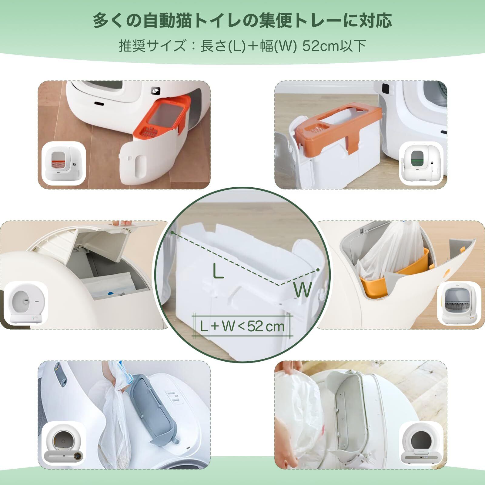 多くの全自動猫トイレに対応。集便トレーの形状やサイズが異なるため、完全にフィットするわけではありませんが、問題なく使用できます。