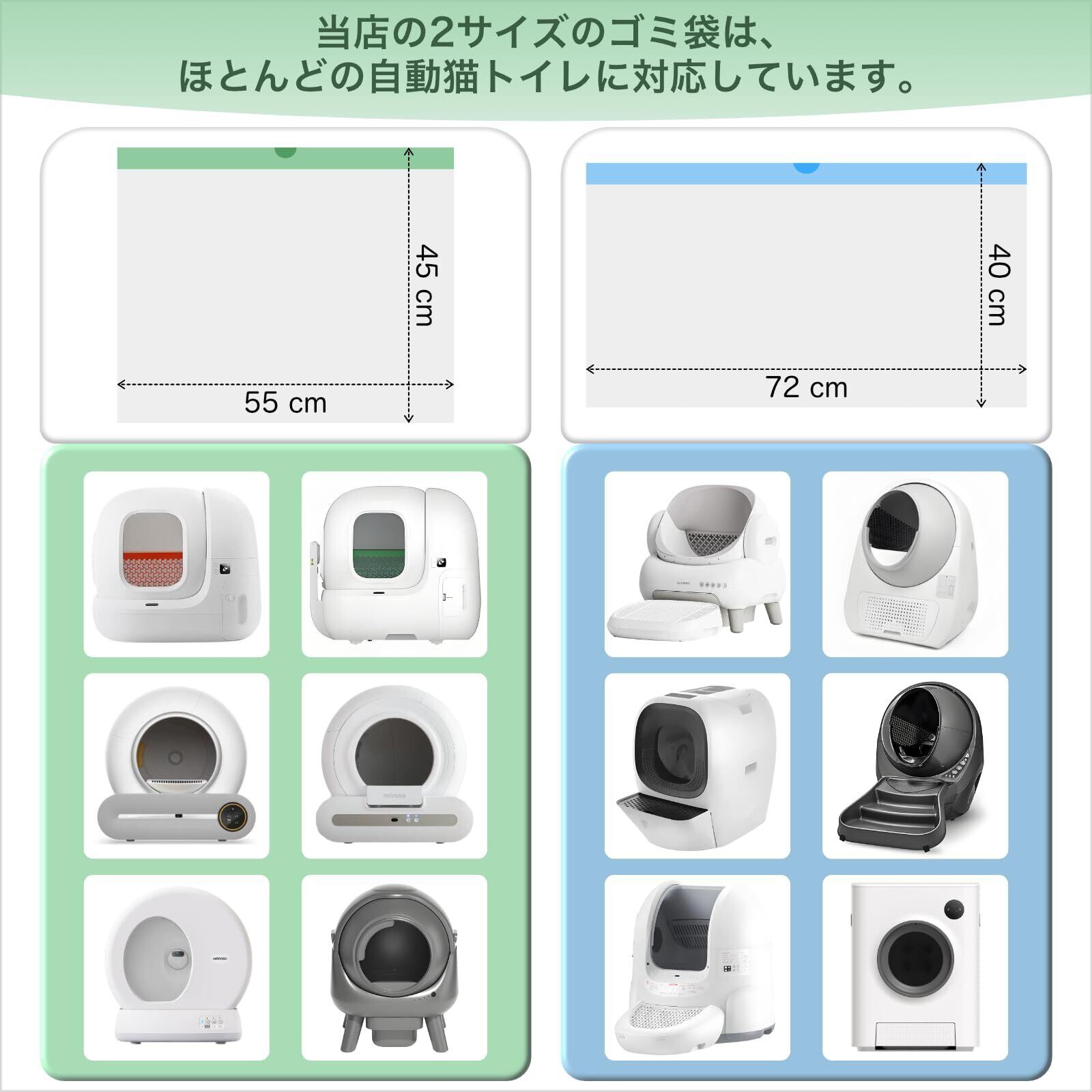 袋のサイズは 幅55cm × 奥行45cm。集便トレーの⻑さと幅の合計が52cm以下、奥行が20cm以下の自動猫トイレにおすすめです。