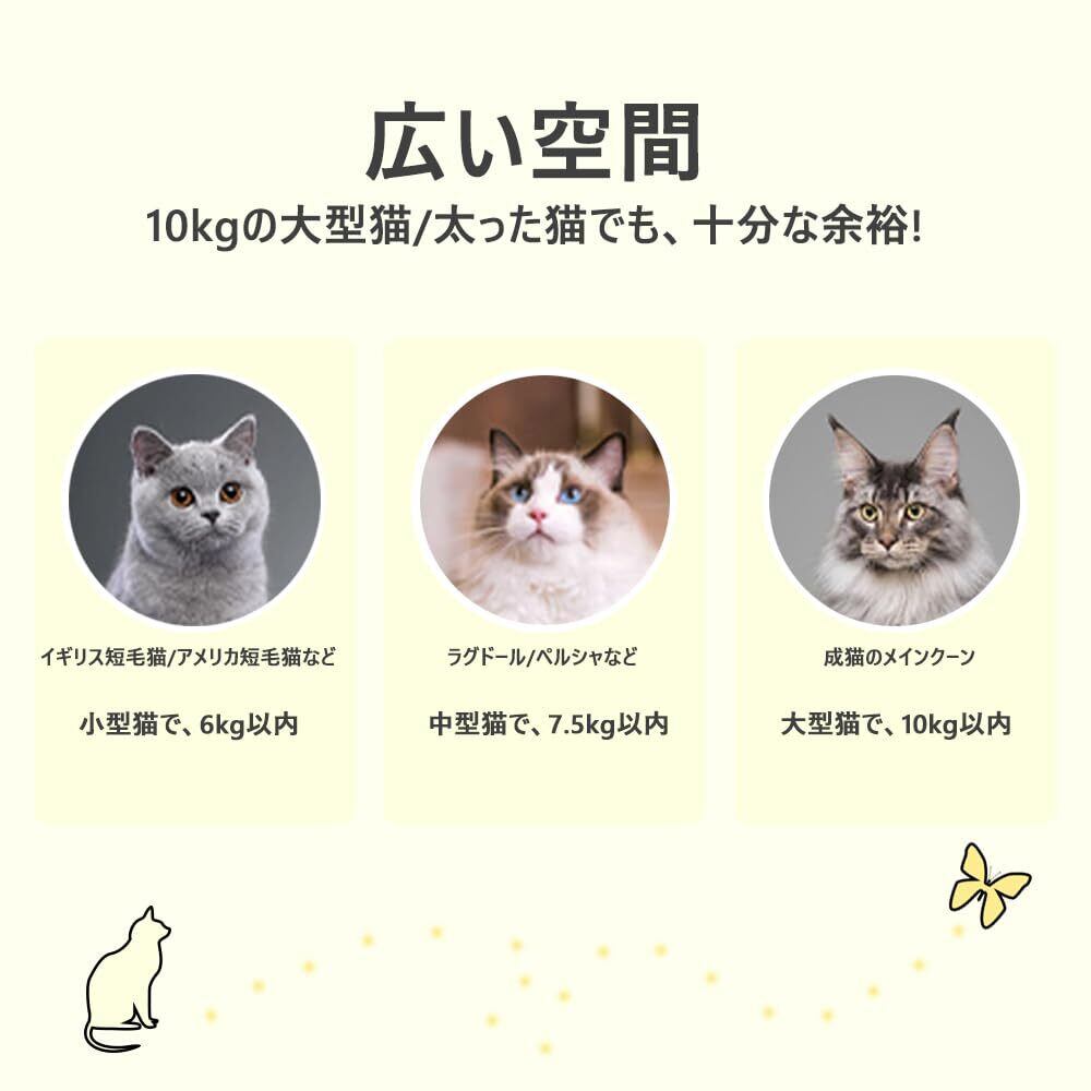 【適用対象】この猫トイレは、体重1-20キログラムの猫に適しています。広々としたゴミ収集容器があり、容量は5リットルで、多頭飼いや大型猫の家庭に非常に適しています。これにより、毎日の手間を省き、常に清潔なトイレ環境を保つことができます。忙しい飼い主の方でも簡単に管理できます。